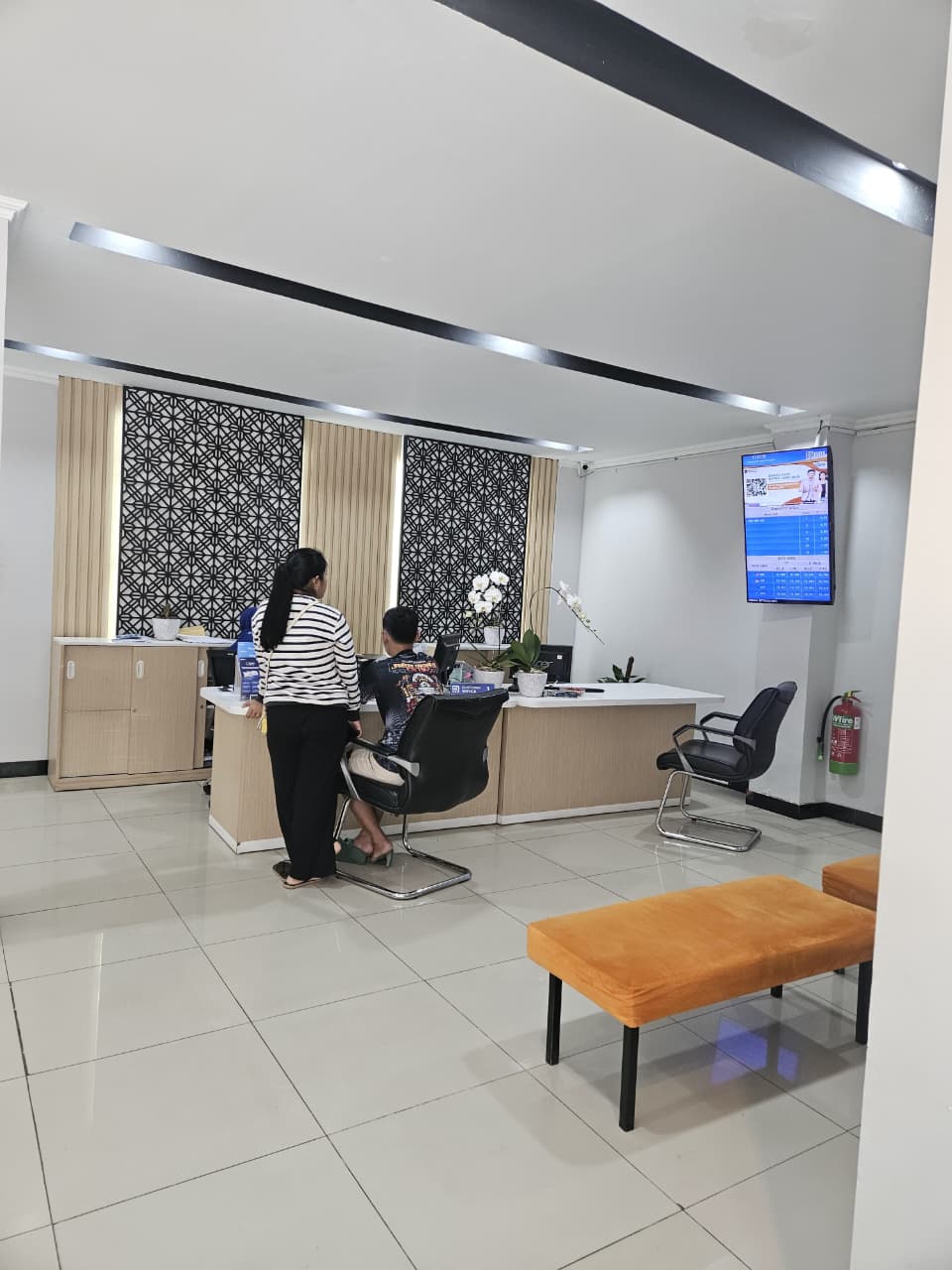 Dengan tampilan yang kini lebih segar, BRI KCP Cililitan Pasar Induk Kramat Jati siap memberikan pengalaman bertransaksi yang lebih nyaman bagi nasabah. Konsep modern, nyaman, dan digital diwujudkan melalui desain interior yang hangat, fungsional, serta estetis. Pemilihan material berkualitas, pengaturan pencahayaan yang baik, dan tata ruang yang dirancang secara cermat bertujuan untuk meningkatkan interaksi positif antara nasabah dan petugas bank.
