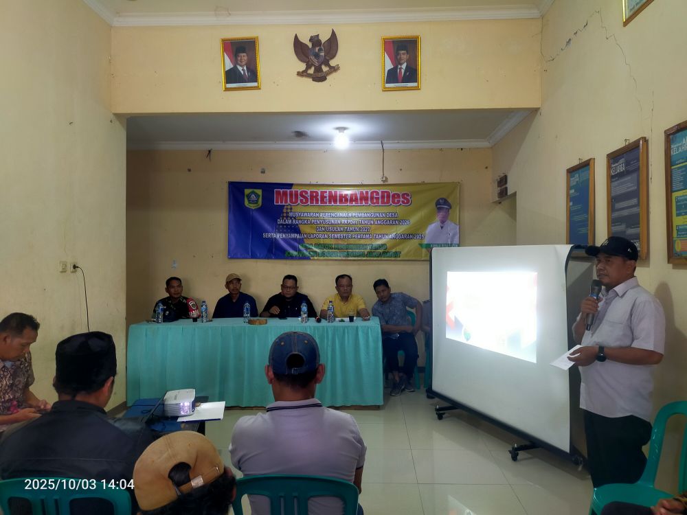 Selain itu, dalam forum ini juga disampaikan Laporan Semester Pertama Tahun Anggaran 2025 sebagai bentuk transparansi dan akuntabilitas Pemerintah Desa kepada masyarakat.