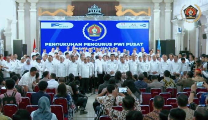 detikhukum.id | Surakarta || Pengurus Persatuan Wartawan Indonesia (PWI) Pusat periode 2025–2030 resmi dikukuhkan di Monumen Pers Nasional, Surakarta, Jawa Tengah, Sabtu 4 Oktober 2025. Momentum bersejarah ini turut dihadiri Menteri Komunikasi dan Digital (Menkomdigi) Meutya Hafid, Wakil Menkomdigi Nezar Patria, serta ratusan insan pers dari berbagai daerah.