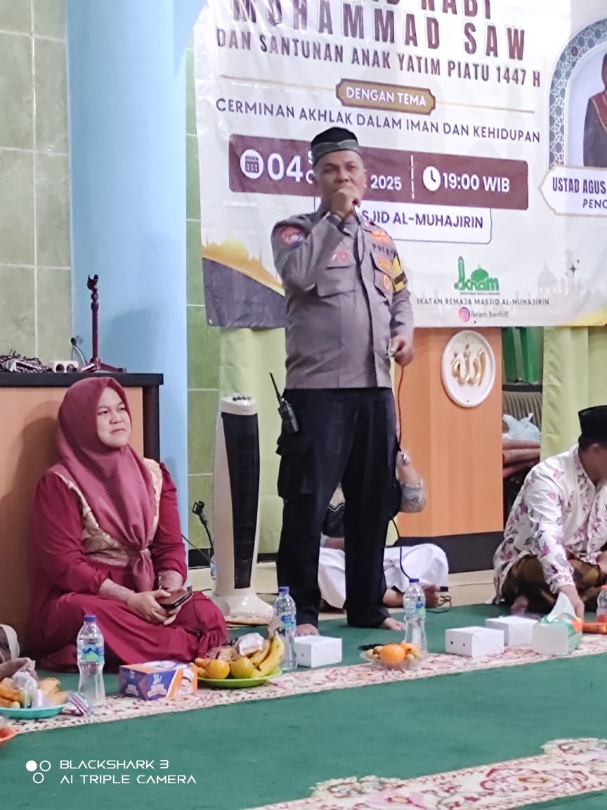 detikhukum.id, || Jakarta Pusat – Bhabinkamtibmas Benhil Aiptu Heri Murgianta bersama tiga pilar menghadiri kegiatan Maulid Nabi Muhammad SAW 1447 H/2025 M di Masjid Al Muhajirin RW 07, Kelurahan Benhil, Kecamatan Tanah Abang, Jakarta Pusat, Sabtu (4/10/2025).