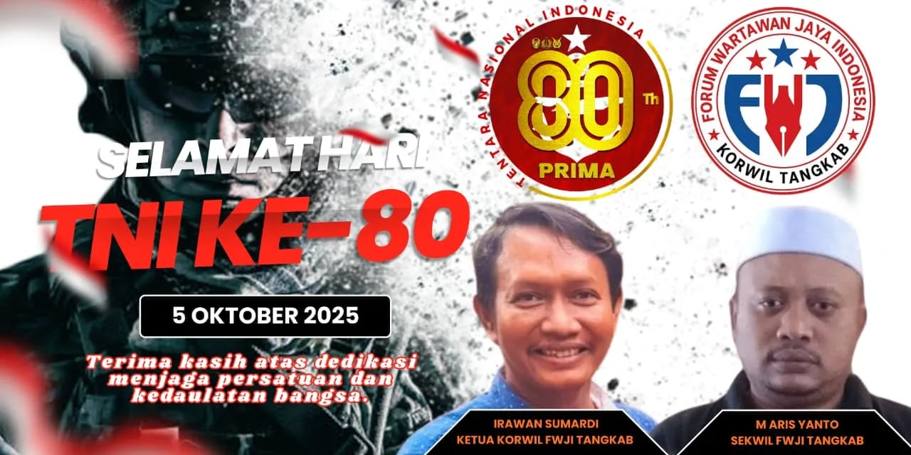 “Kami keluarga besar FWJI Kabupaten Tangerang mengucapkan selamat HUT TNI ke-80. Terima kasih atas dedikasi dan pengabdian TNI yang selalu siap menjaga persatuan dan kedaulatan bangsa,” ujar Irawan Sumardi.
