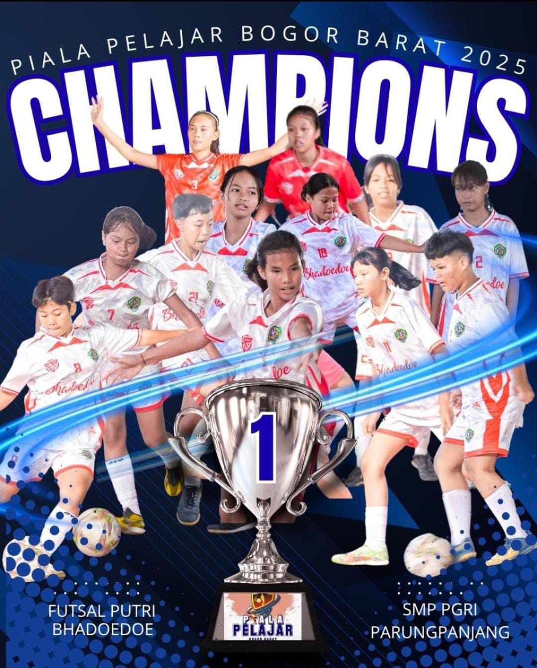 detikhukum.id, || Kabupaten Bogor — Tim futsal putri SMP PGRI Parungpanjang menorehkan sejarah gemilang dengan menjuarai Piala Pelajar Bogor Barat 2025, setelah menaklukkan SMP Negeri 2 Leuwisadeng dengan skor meyakinkan 5–1 pada laga final yang digelar di Panghegar Sport Center, Cibungbulang, Minggu (5/10/2025).