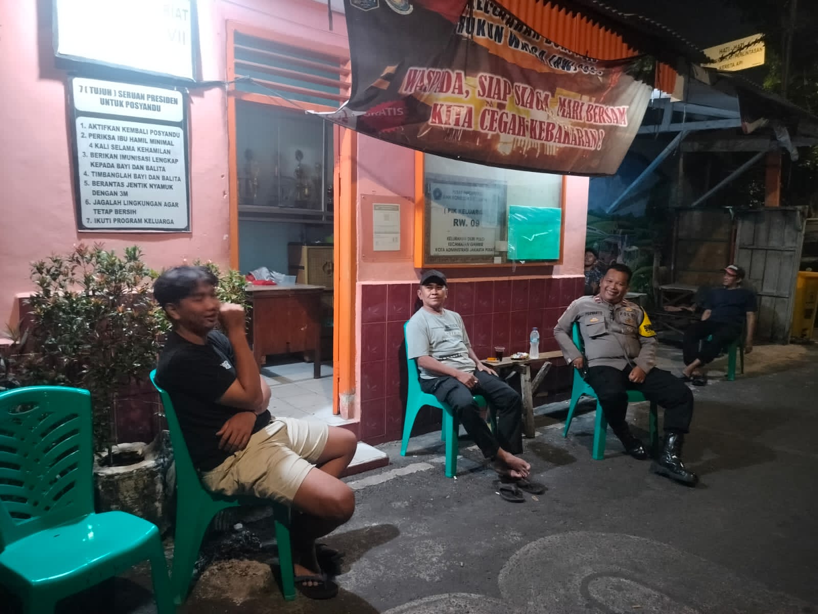 Dalam kegiatan tersebut, Aipda Purwanto disambut oleh Bapak Sutrisno dan Bapak Nurdin, selaku awak kamling RW 09. Melalui suasana santai namun penuh makna, ia berdialog langsung dengan warga untuk bertukar informasi seputar situasi Kamtibmas di lingkungan setempat.