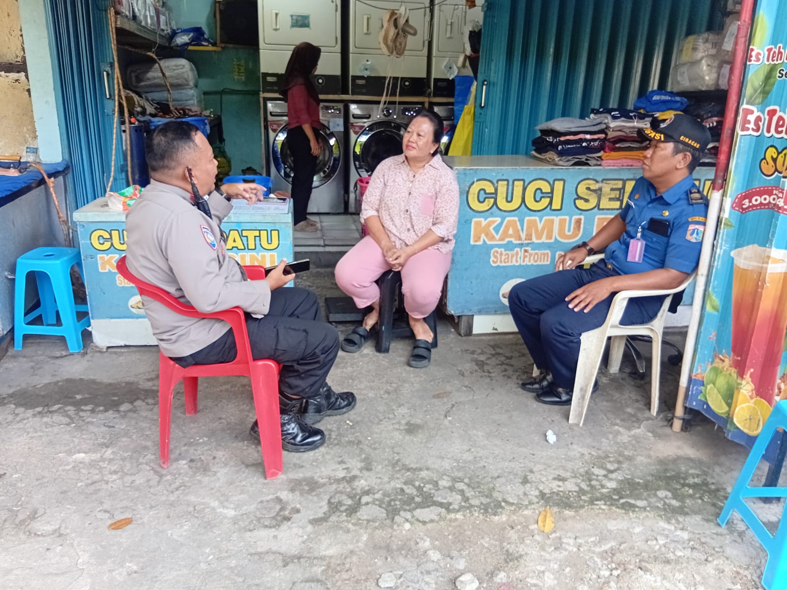 Dalam kegiatan tersebut, Aipda Purwanto menyambangi kantor Sudin Damkar dan berdialog dengan Bapak Tri Wantoro serta rekan-rekan petugas untuk saling bertukar informasi terkait situasi keamanan dan ketertiban masyarakat. Kunjungan berlanjut ke tempat usaha warga, di mana ia menemui Ibu Siska, seorang pengusaha laundry di kawasan Cibunar, untuk memberikan himbauan seputar Kamtibmas dan pencegahan potensi kebakaran.