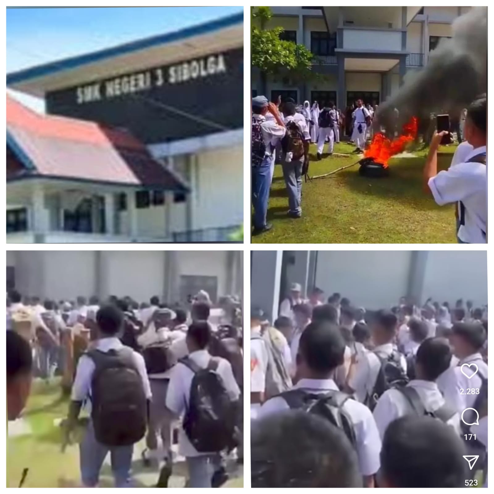 detikhukum.id || SIBOLGA – Ratusan siswa Sekolah Menengah Kejuruan Negeri (SMKN) 3 Sibolga menggelar aksi demonstrasi dengan membakar ban di depan sekolah pada Senin (6/10) pagi. Aksi ini dipicu oleh dugaan penyelewengan dana Bantuan Operasional Sekolah (BOS).