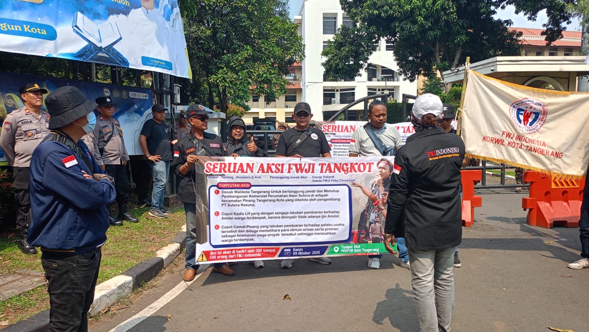 Aksi yang melibatkan FWJ Indonesia dan perwakilan warga Pinang ini dinilai bentuk protes keras adanya pembangunan perumahan komersil oleh Sutera Rasuna di wilayah Kecamatan Pinang Kota Tangerang. Opan juga menegaskan regulasi wilayah menjadi tanggungjawab walikota sebagai pejabat nomor 1 diwilayahnya.