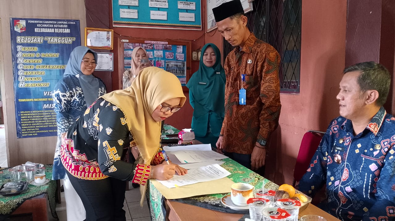 detikhukum.id,- Lampung Utara. Pasca Pelantikan Pejabat ASN oleh Wakil Bupati Lampung Utara beberapa hari yang lalu, kini Kelurahan Rejo Sari Kecamatan Kotabumi Kabupaten Lampung Utara menggelar Serah Terima Jabatan ( Sertijab ) Lurah yang berlangsung di Aula Kantor Kelurahan Rejo Sari. Kamis 16/10/2025.