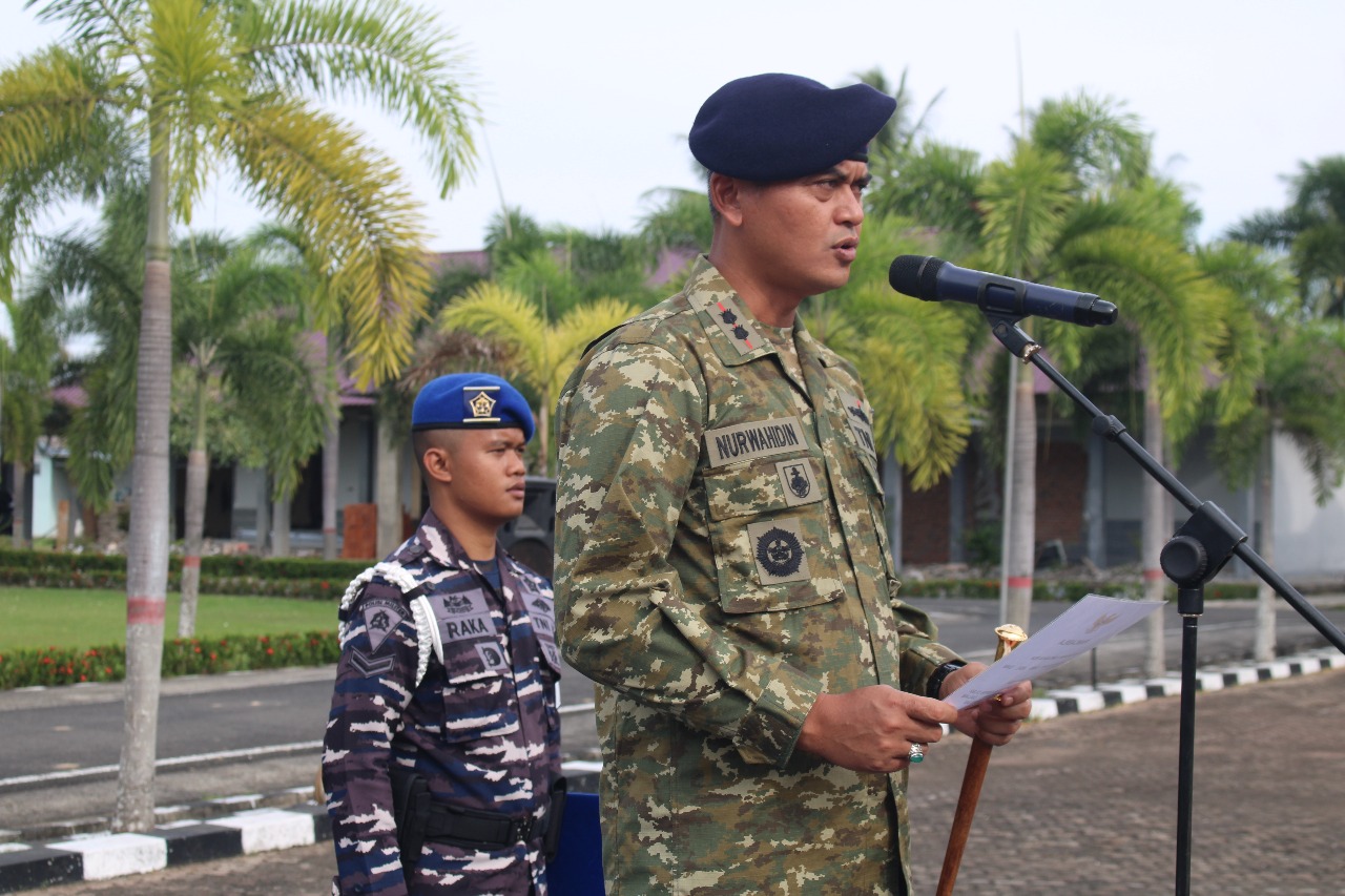 Danlanal Bengkulu Letkol Laut (P) Nurwahidin, S.H., M.Tr.Opsla., bertindak selaku Inspektur Upacara dan bertindak sebagai Komandan Upacara (Danup) Kapten Laut (P) Jumadi, Perwira Upacara (Paup) Letda Laut (T) Wildan Yova Gumara, S.T. Upacara bendera diikuti segenap Perwira dan Prajurit serta Pegawai Negeri Sipil (PNS) Lanal Bengkulu.