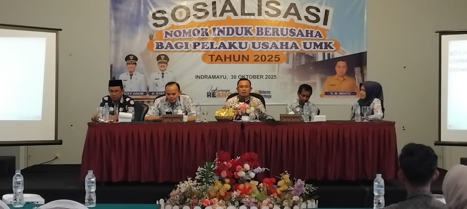 detikhukum.id,- bgusIndramayu, – Dinas Penanaman Modal dan Pelayanan Terpadu Satu Pintu (DPMPTSP) Kabupaten Indramayu menggelar acara sosialisasi Nomor Induk Berusaha (NIB) bagi para peserta pelaku Usaha Mikro Kecil (UMK) yang ada di Kabupaten Indramayu berjalan dengan lancar dan sukses yang diselenggarakan di Aula Hotel Prima Jl. Di Panjaitan No.61, Karanganyar, Kecamatan Indramayu, Kabupaten Indramayu,Kamis (30/10/2025).