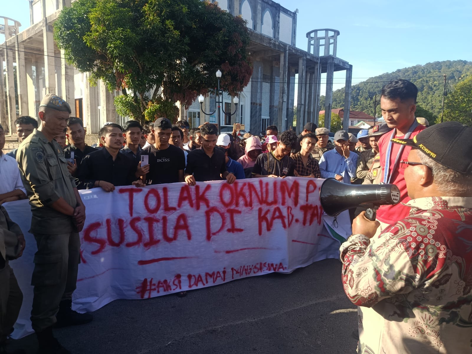 Dalam aksinya, mahasiswa membawa berbagai spanduk dan poster bertuliskan “Tapanuli Tengah Butuh Pemimpin Bermoral” dan “Tolak Pejabat Amoral di Lingkungan Pemerintahan”.