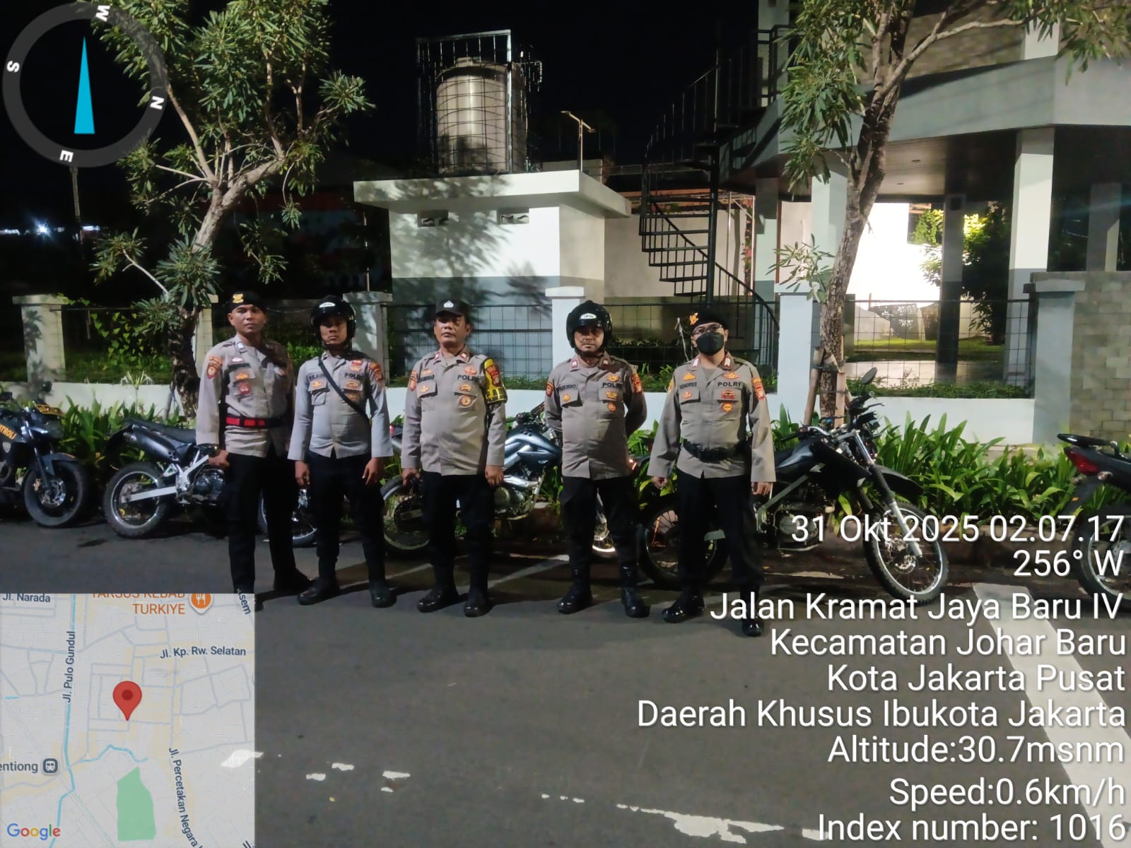 detikhukum.id,- Jakarta Pusat – Dalam upaya menjaga keamanan dan ketertiban masyarakat di wilayah hukumnya, Polsek Johar Baru melaksanakan Patroli Cipta Kondisi pada Jumat (31/10/2025) dini hari pukul 02.30 WIB. Kegiatan ini dipimpin oleh Aiptu Zulfikar Hasibuan, Kapolsubsektor Galur, bersama 10 personel Polsek Johar Baru.