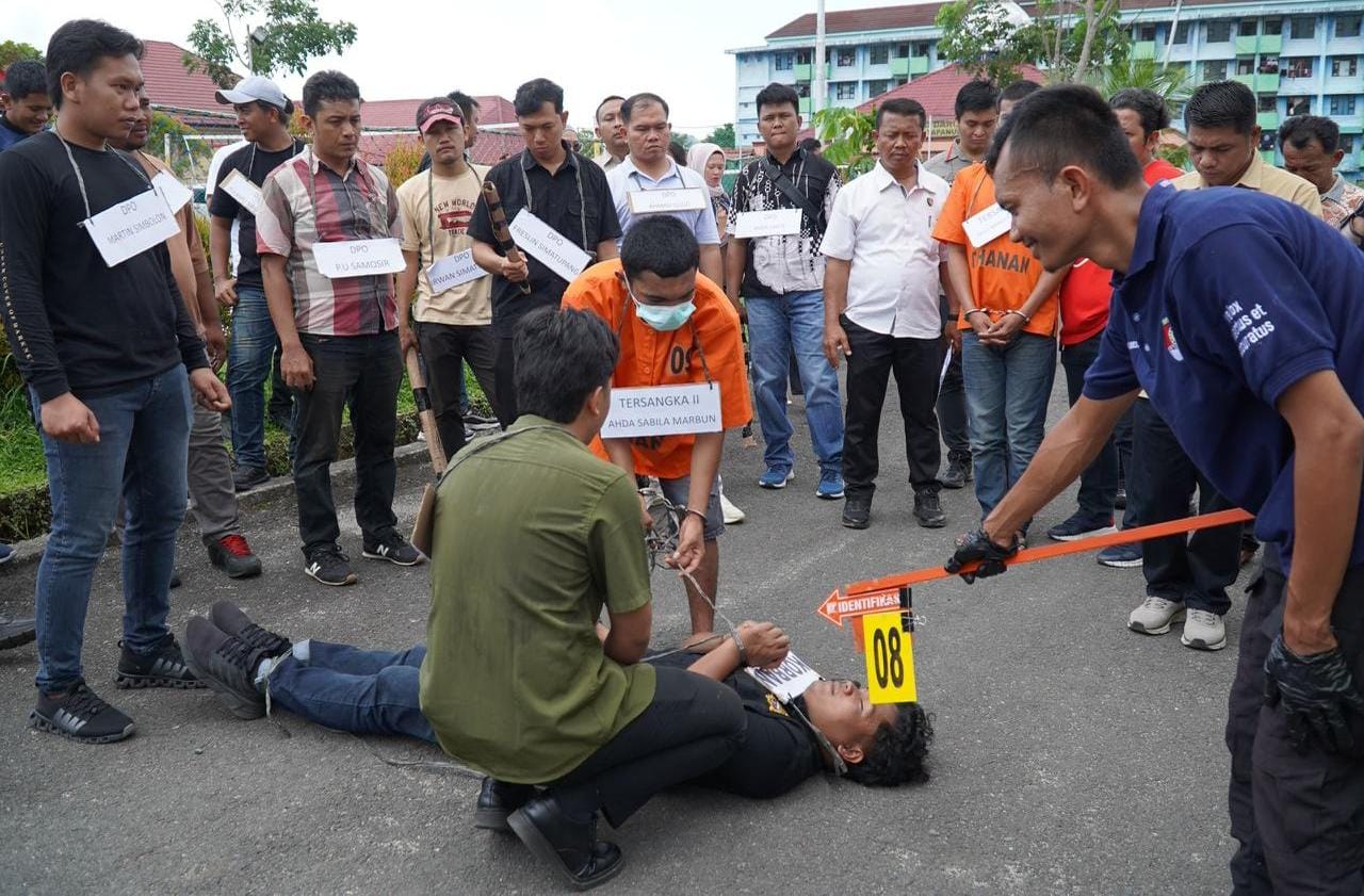 “Rekonstruksi hari ini telah dilaksanakan dengan aman dan lancar. Kami menghadirkan dua tersangka yang sudah ditahan, AWS dan ASM. Sementara itu, 18 pelaku lainnya masih berstatus Daftar Pencarian Orang (DPO) dan terus kami buru. Rekonstruksi ini vital untuk melengkapi berkas perkara sebelum dilimpahkan ke Kejaksaan,” tegas AKP M Taufik Siregar.