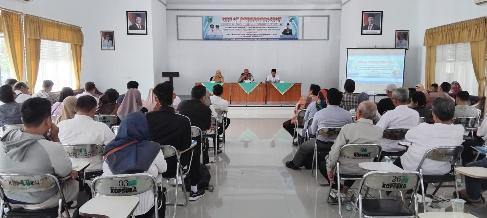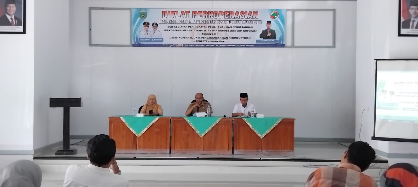 Dinas Koperasi, UKM, Perdagangan dan Perindustrian (Diskopdagin) Kabupaten Indramayu menggelar acara pendidikan dan pelatihan (Diklat) perkoperasian bagi pengurus dan pengawas Koperasi Desa dan Kelurahan Merah Putih.Untuk Sub kegiatan peningkatan pemahaman dan pengetahuan perkoperasian serta kapasitas dan kompetensi Sumber Daya Manusia (SDM) koperasi tahun 2025. Yang diselenggarakan di Aula KPRI Kopsuka JL Letjen Haryono, Desa Penganjang Kecamatan Sindang, Kabupaten Indramayu. Senin (03/11/2025).
