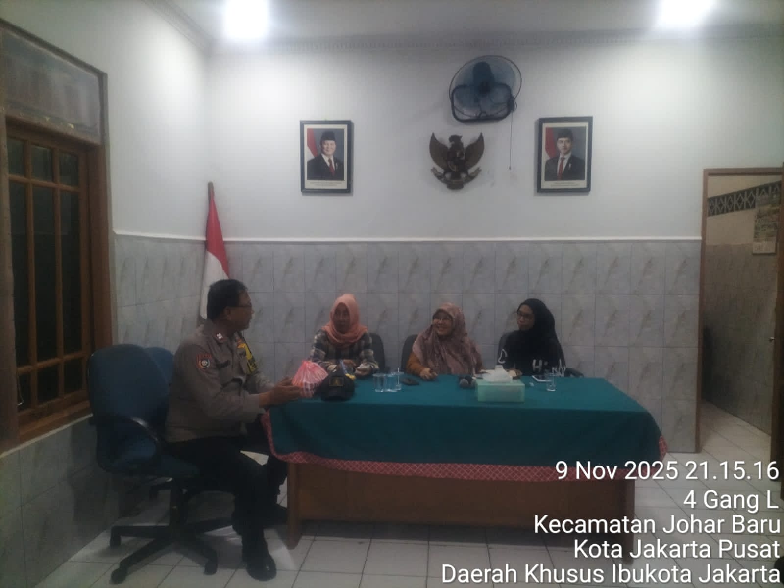 Kegiatan yang berlangsung di Sekretariat RW 05 Jalan Johar Baru IV A ini merupakan bagian dari program cooling system Polri, yang bertujuan untuk mempererat komunikasi dengan masyarakat sekaligus mencegah potensi gesekan sosial antarwarga. Dalam kesempatan tersebut, Aiptu Sunarto bertemu dengan Ibu Aminah, selaku Ketua RW 05, serta berdialog mengenai situasi keamanan di lingkungan setempat.