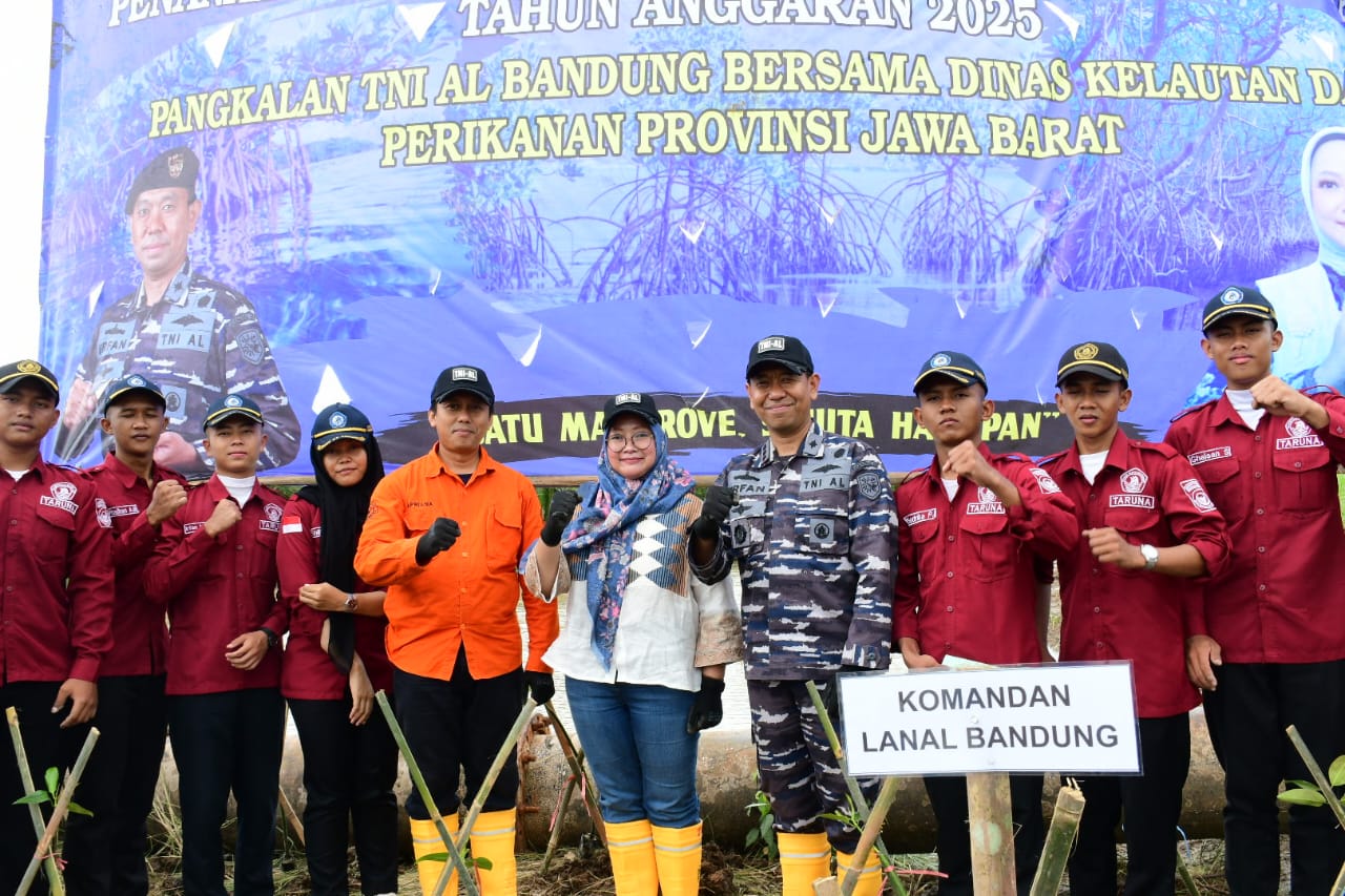 Penanaman mangrove tersebut dihadiri langsung oleh Komandan Lanal Bandung Kolonel Laut (P) Erfan Indra Darmawan, S.E., M.Tr.Hanla., M.M., CIQaR., dan Kepala Dinas Kelautan dan Perikanan Provinsi Jawa Barat Rinny Cempaka, S.Si., M.T.