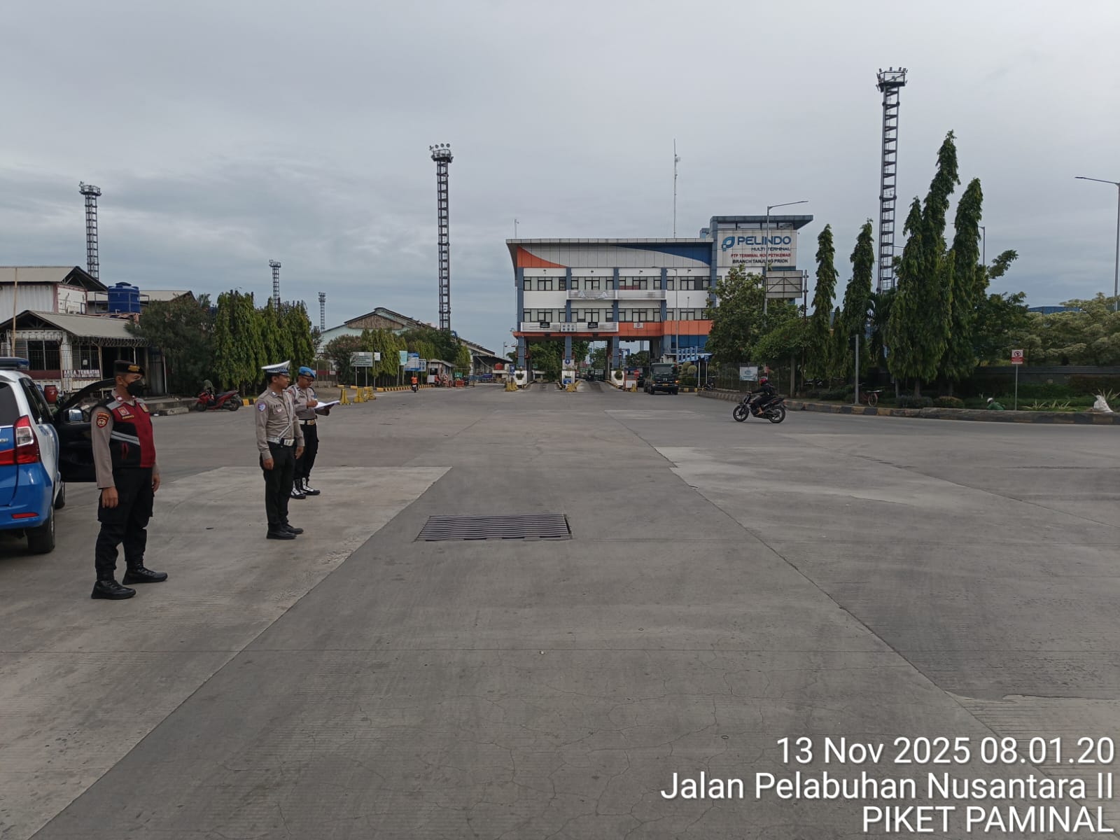 Kapolres Pelabuhan Tanjung Priok, AKBP Dr. Martuasah H. Tobing, S.I.K., M.H., bersama Kasipropam IPTU S. Sukoco, S.H., memimpin langsung pengaturan lalu lintas serta memastikan kesiapan dan kehadiran personel pada setiap titik pengaturan.