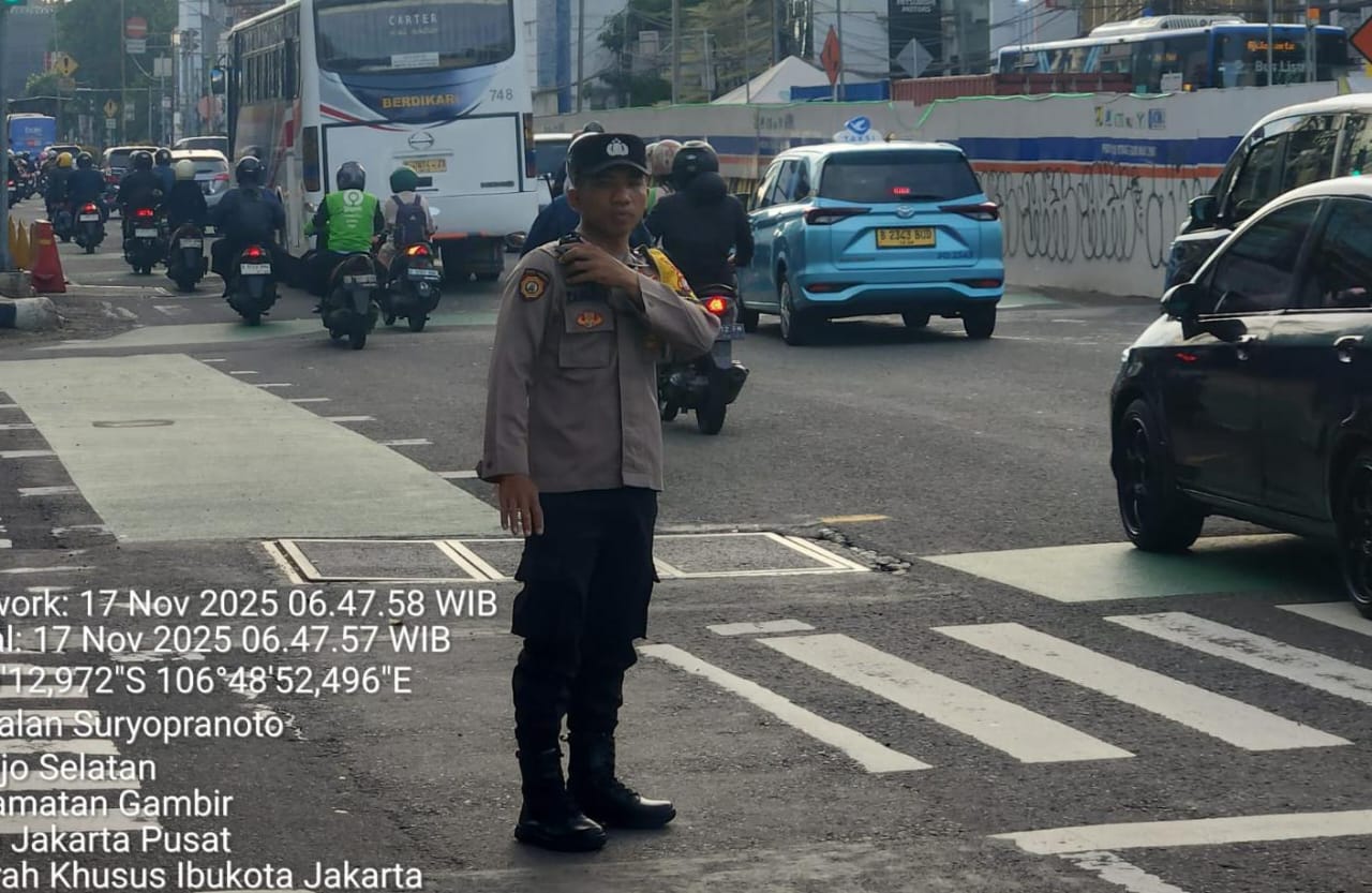 detikhukum.id,- Jakarta Pusat — Senin, 17 November 2025, suasana pagi di TL Kesehatan, Kelurahan Petojo Utara, Kecamatan Gambir, tampak lebih tertib dengan hadirnya anggota Polsubsektor Roxy yang memberikan pelayanan langsung kepada masyarakat pengguna jalan. Aipda Zaenal Arifin melakukan ploting dan pengaturan arus lalu lintas sebagai bagian dari upaya menjaga keamanan, ketertiban, serta kelancaran mobilitas warga.