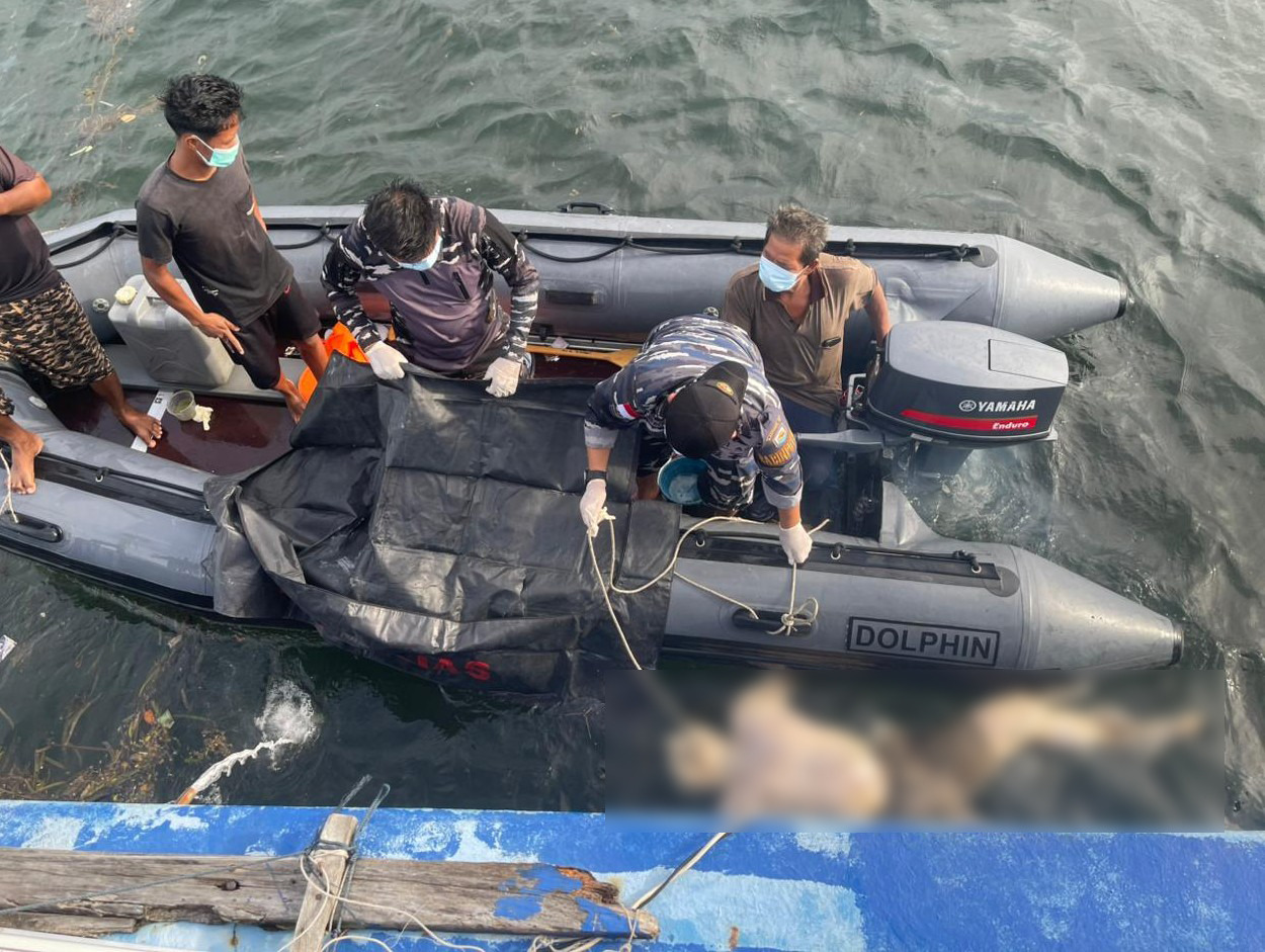 Kemudian Tim SAR Gabungan langsung bergerak menuju ke lokasi penemuan mayat yang mengapung, selanjutnya Tim SAR melaksanakan evakuasi terhadap mayat tersebut, dengan ciri-ciri mayat jenis laki-laki, baju terlepas dan memakai celana pendek warna hitam tidak bermerk serta badan sudah membengkak.