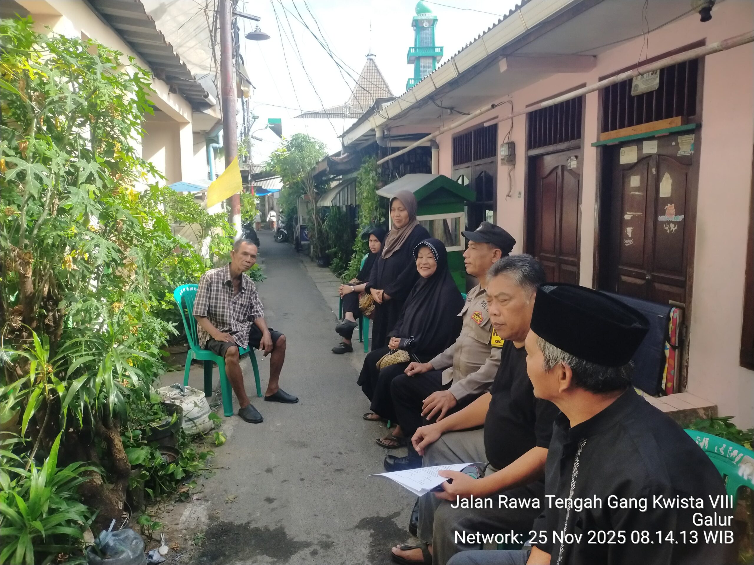 detikhukum.id,- Jakarta Pusat – Bhabinkamtibmas Kelurahan Galur Aiptu Baktiar melaksanakan kegiatan cooling system, sambang, dan takziah kepada keluarga almarhum M. Yunus (84) di RT 010/04 Jl. Rawa Tengah Gg. Kuwista VIII, Selasa (25/11/2025) pukul 09.00 WIB. Kegiatan ini turut dihadiri Ketua RT Pak H. Mamik, Pak Guswadi, serta warga sekitar.