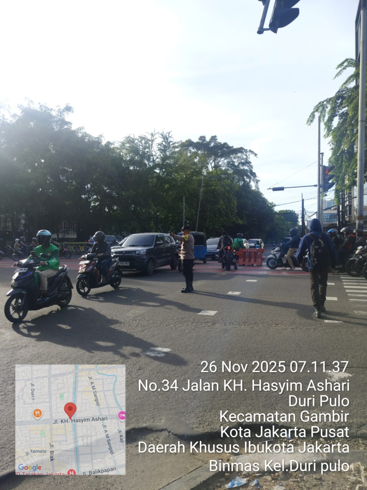 detikhukum.id, || Jakarta Pusat — Pagi di kawasan Simpang Traffic Light (TL) Cideng, tepatnya di depan Holland Bakery Kelurahan Duri Pulo, selalu menjadi salah satu titik yang penuh dinamika. Arus kendaraan dari berbagai arah bertemu, para pekerja bergegas memulai hari, sementara pedagang kecil mulai menata lapak mereka. Di tengah riuhnya aktivitas itu, Aipda Purwanto, Bhabinkamtibmas Kelurahan Duri Pulo, kembali hadir untuk memastikan semuanya berjalan aman dan tertib, Rabu (26/11/2025).