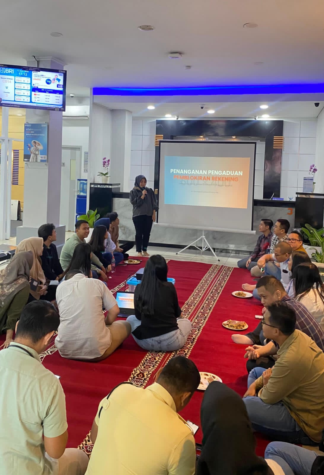 Sosialisasi dilaksanakan di Kantor Cabang Palmerah dan membahas alur penanganan pengaduan, ketentuan pemblokiran rekening, serta langkah preventif yang perlu dilakukan dalam menjaga keamanan data nasabah.