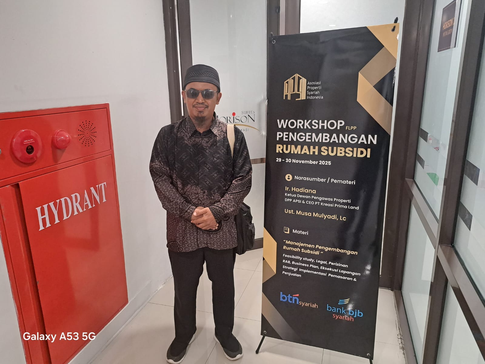 Ustadz Ridwan Wirabumi selaku Ketua DPW Asosiasi Properti Syariah Indonesia (APSI) Jabodetabek menegaskan komitmennya dalam mendukung program Pemerintah yaitu penyediaan 3 juta rumah bagi masyarakat kurang mampu. Penegasan tersebut disampaikan Ustadz Ridwan Wirabumi disela-sela kegiatan workshop Pengembangan Rumah Bersubsidi di Kota Bekasi, Sabtu (29/11/2025).