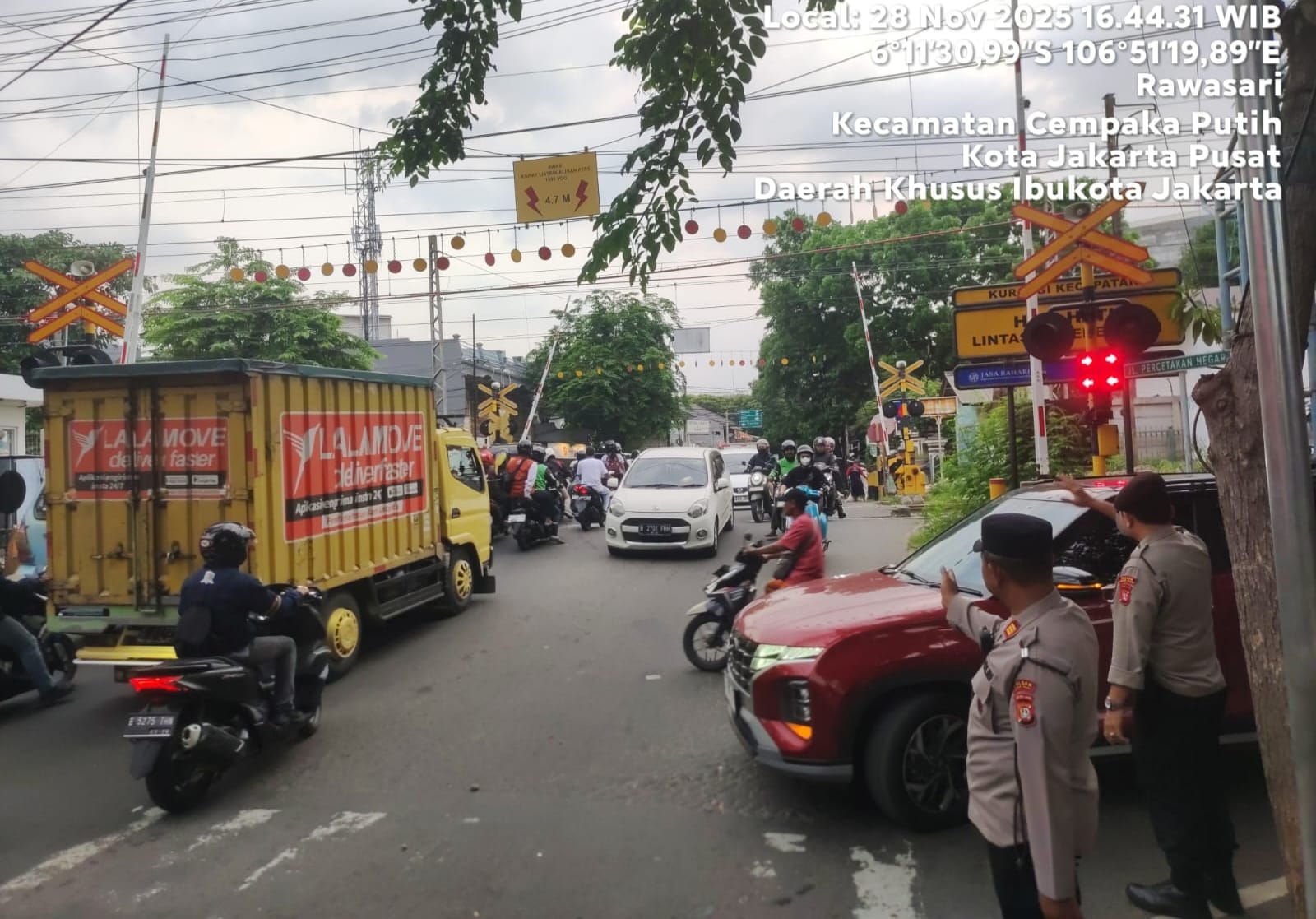 detikhukum.id,- Jakarta Pusat — Polsek Johar Baru melaksanakan pengaturan lalu lintas (traffic control) dan antisipasi gangguan keamanan, Jumat (2/12/2025) pukul 16.00 WIB, di lintasan Kereta Api Jl. Percetakan Negara I RW 07, Kelurahan Johar Baru, Kecamatan Johar Baru, Jakarta Pusat.