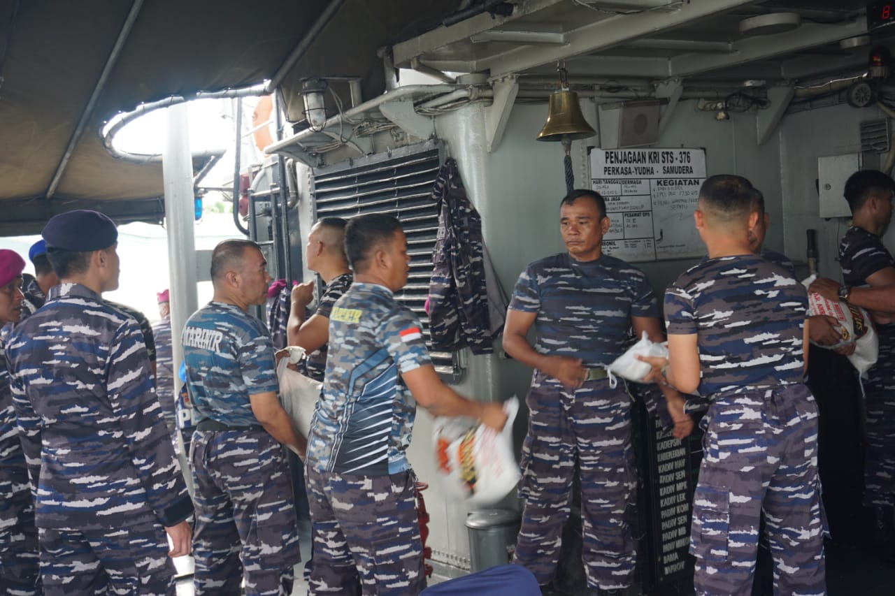 Sebagai wujud nyata dukungan TNI AL kepada masyarakat, telah disiapkan dan diberangkatkan bantuan berupa beras, minyak goreng, serta berbagai bahan makanan pokok lainnya. Bantuan tersebut diangkut menggunakan dua unsur KRI, yakni KRI STS-376 dan KRI Torani-860