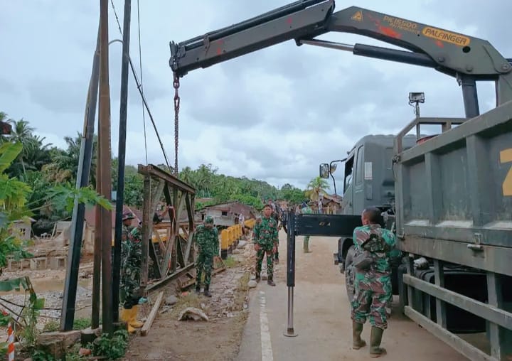detikhukum.id – Tapanuli Tengah || Satuan Tugas (Satgas) Yonzipur I/DD jajaran Kodam I/Bukit Barisan berhasil menuntaskan pemasangan Jembatan Bailey di titik Jembatan Anggoli, Kecamatan Sibabangun, Kabupaten Tapanuli Tengah, pada Rabu 10 Desember 2025. Pemasangan jembatan sepanjang 33 meter tersebut telah mencapai 100 % sebagai bagian dari percepatan pembukaan akses pascabencana.