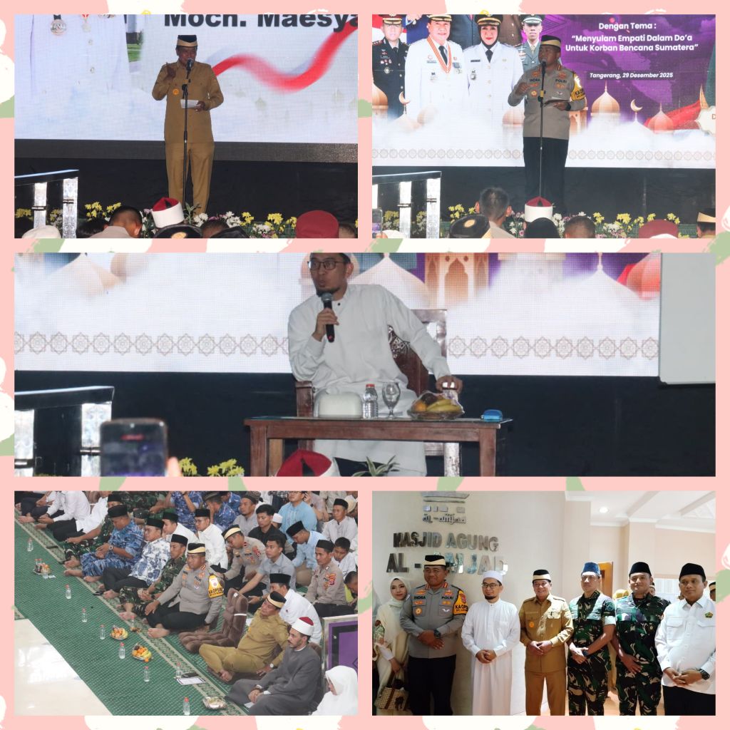 detikhukum.id, || Tangerang – Jelang pergantian tahun dari 2025 ke tahun 2026, Polresta Tangerang bersama Forkopimda Kabupaten Tangerang menggelar Istighosah dan Tablig di Masjid Al-Amjad, Puspemkab Tangerang, Senin (29/12/2025).