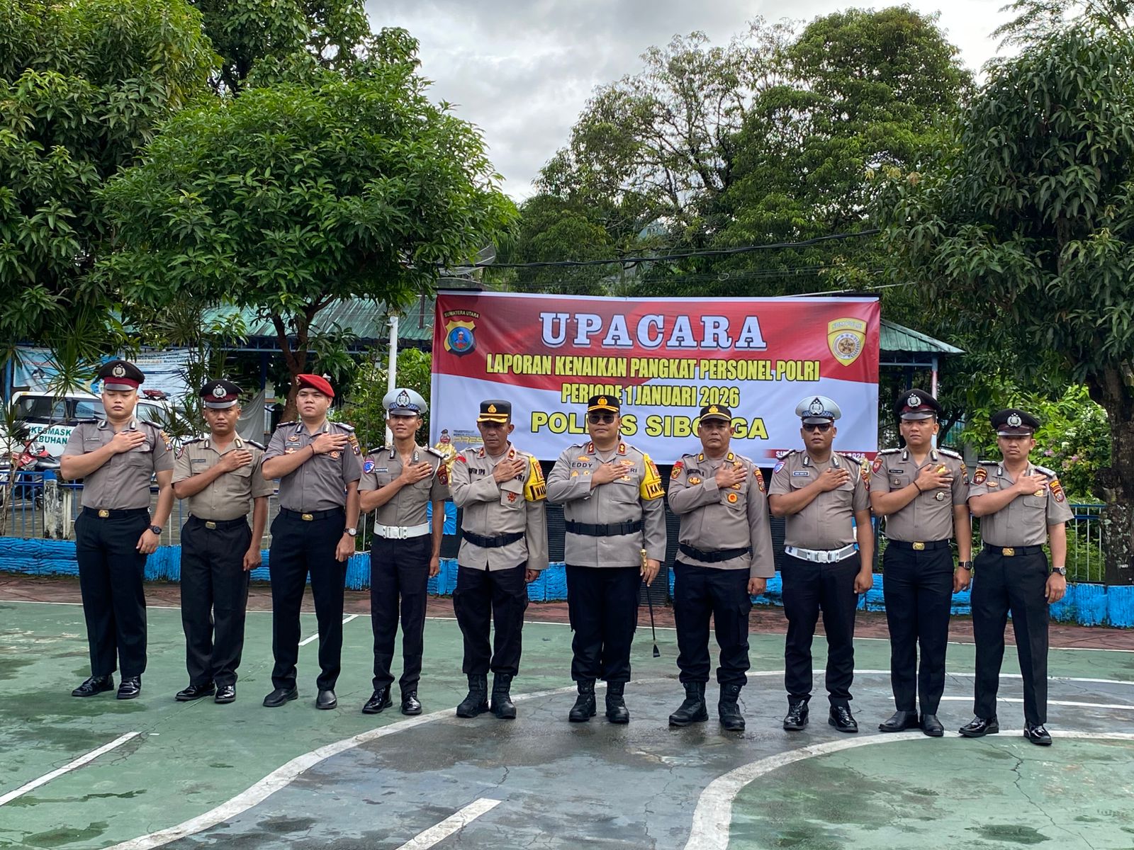 detikhukum.id, || SIBOLGA — Kepolisian Resor (Polres) Sibolga melaksanakan Upacara Kenaikan Pangkat Personel Polri periode 1 Januari 2026 pada Jumat, 2 Januari 2026, pukul 08.00 WIB. Kegiatan berlangsung khidmat bertempat di Lapangan Satuan Lalu Lintas Polres Sibolga dan diikuti oleh seluruh jajaran Polres Sibolga.