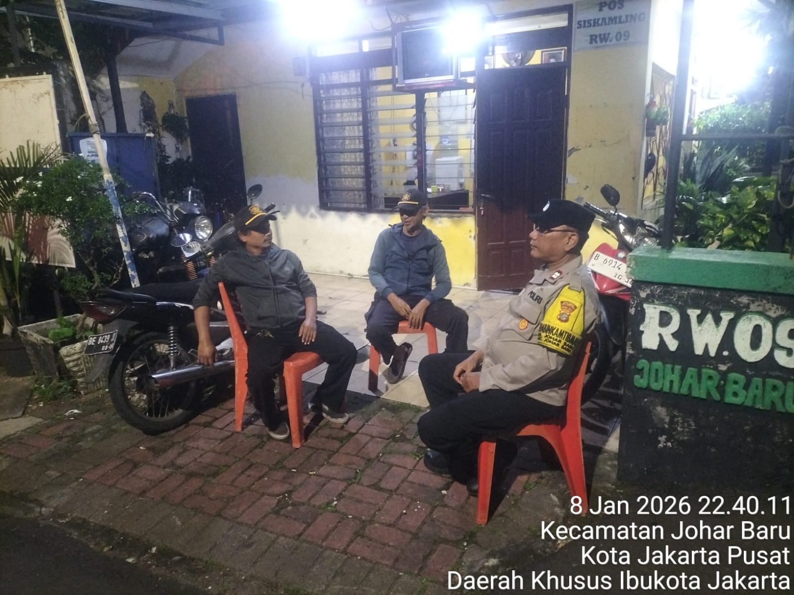 detikhukum.id,- Jakarta Pusat – Upaya menjaga keamanan dan ketertiban masyarakat terus dilakukan jajaran Polsek Johar Baru melalui peran aktif Bhabinkamtibmas. Pada Jumat (9/1/2026) dini hari sekitar pukul 01.00 WIB, Bhabinkamtibmas Kelurahan Johar Baru Aiptu Sunarto melaksanakan patroli wilayah sekaligus sambang ke Pos Satkamling RW 09, Jalan Johar Baru I, Kelurahan Johar Baru, Kecamatan Johar Baru, Jakarta Pusat.