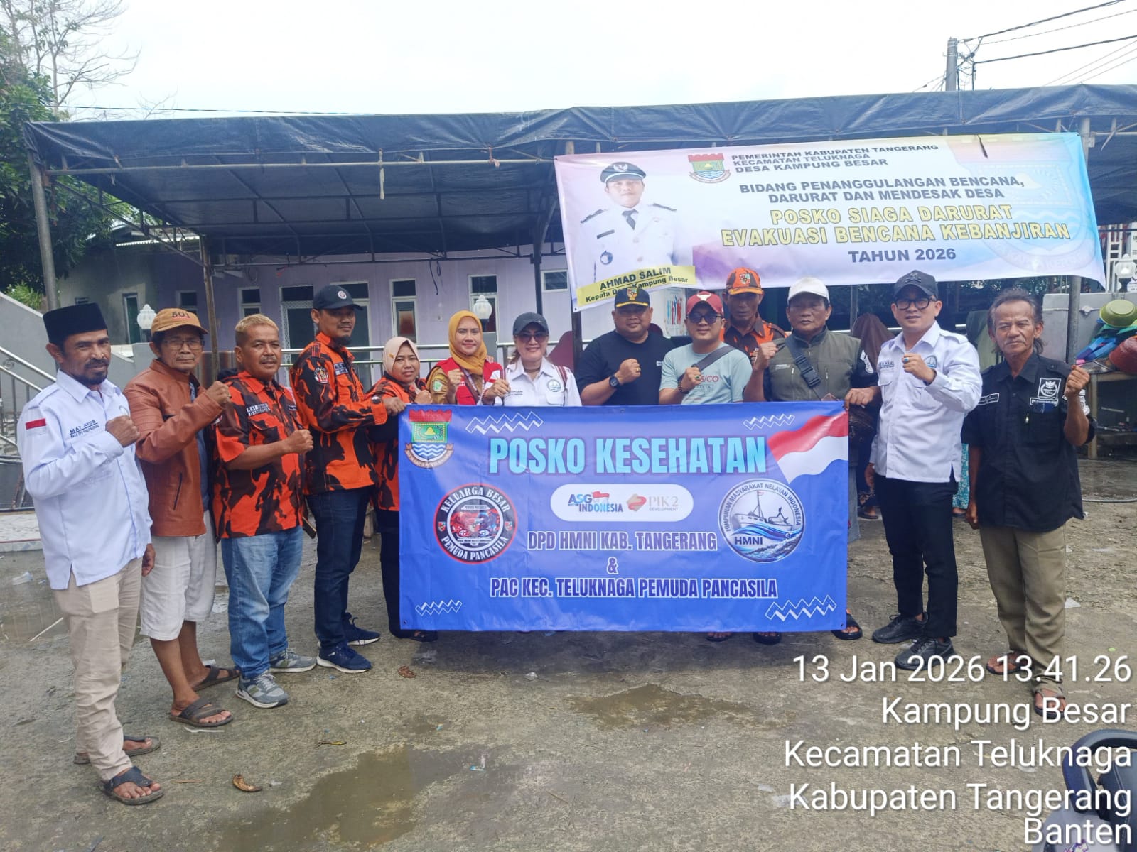 Banjir yang melanda Desa Kampung Besar, Kecamatan Teluknaga, Kabupaten Tangerang, meninggalkan persoalan kesehatan bagi masyarakat. Untuk menanggapi kondisi tersebut, DPD HMNI Kabupaten Tangerang, PAC Pemuda Pancasila Teluknaga, Puskesmas Teluknaga, dan Pemerintah Desa Kampung Besar berkolaborasi mendirikan Posko Kesehatan Terpadu.