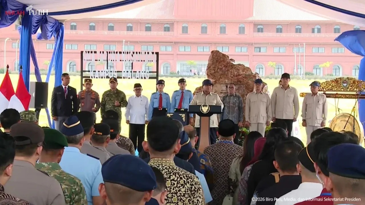 Presiden Republik Indonesia, Prabowo Subianto Djojohadikusumo meresmikan SMA Taruna Nusantara Kampus Malang pada Selasa (13/1/2026). ,