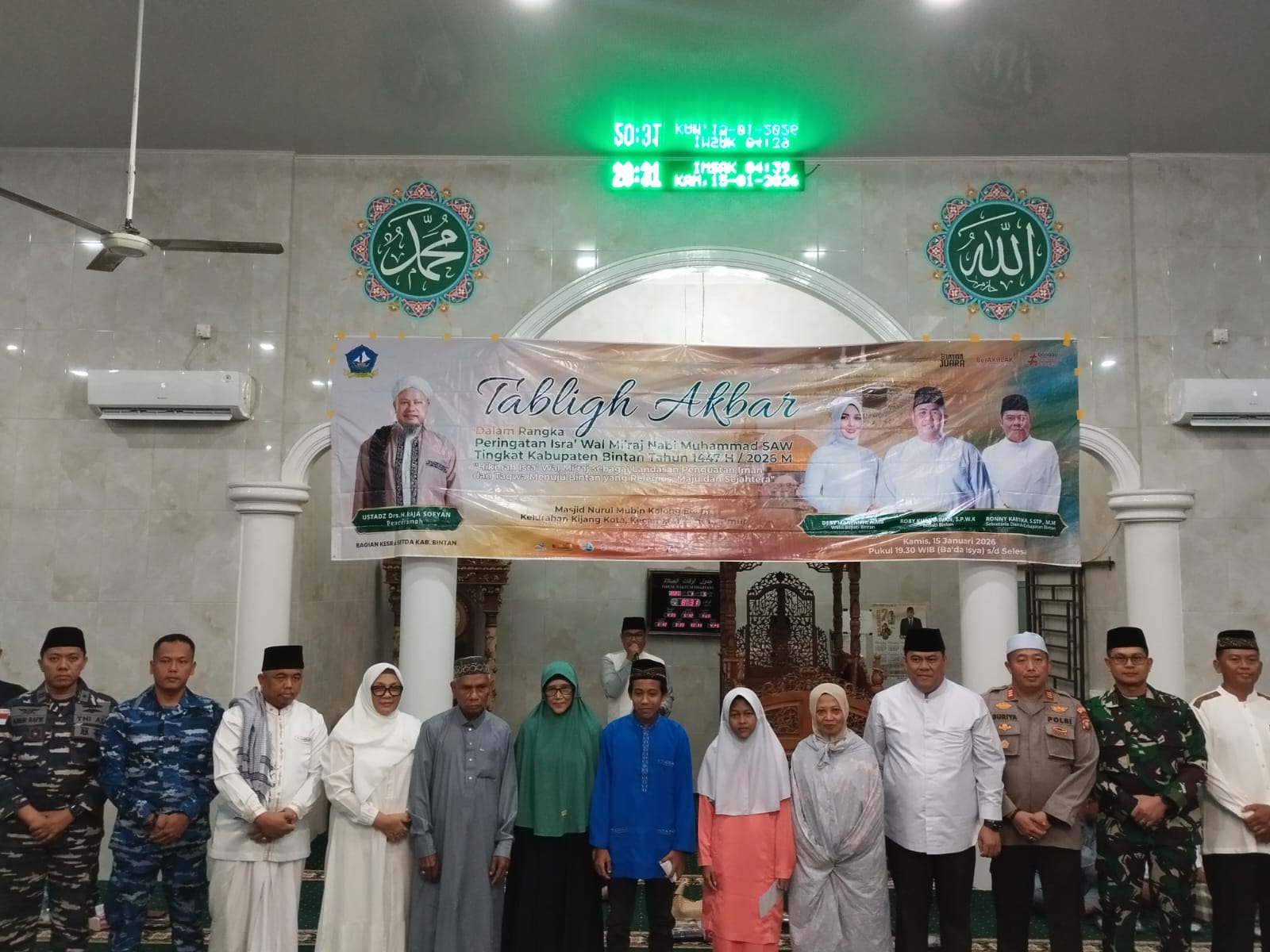 detikhukum.id, || TNI AL, Bintan,- Dalam rangka memperingati Isra’ Mi’raj Nabi Muhammad SAW tahun 1447 H/2026, Komandan Pos TNI AL (Posal) Kijang Lettu Laut (P) Ainur Rafik, mewakili Komandan Lanal Bintan turut hadir dalam acara yang digelar di Masjid Nurul Mubin Kolong Enam, Kecamatan Bintan Timur, Kabupaten Bintan. Kamis (15/01/2026).