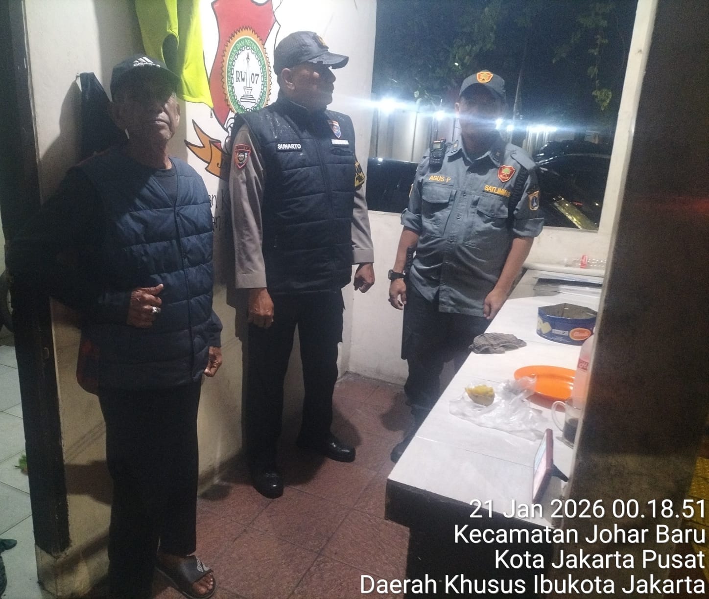 Kegiatan tersebut berlangsung di Poskamling RW 07 yang berlokasi di Jalan Percetakan Negara II RW 07. Dalam kesempatan itu, Aiptu Sunarto berdialog langsung dengan Bapak Agus dan Bapak Muhadi selaku awak Satkamling RW 07 untuk bertukar informasi terkait situasi keamanan di lingkungan sekitar.