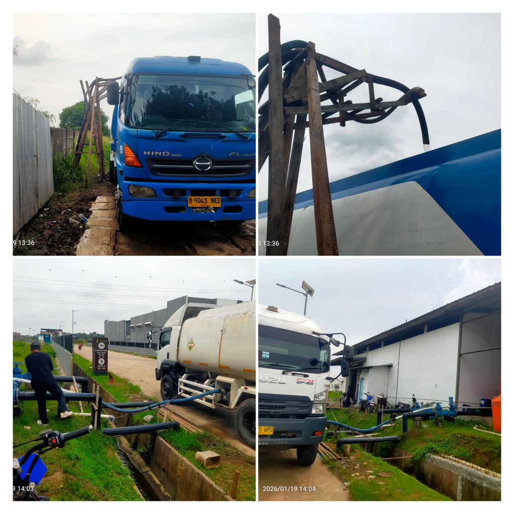 Dugaan tersebut diperkuat oleh hasil pantauan awak media di lapangan. Pada Senin, 19 Januari 2026, terlihat mobil tangki air berkapasitas sekitar 16.000 liter terparkir di pinggir Jalan Baru Jatake, diduga tengah melakukan pengambilan air dari bekas galian pasir yang tidak diketahui status perizinannya.