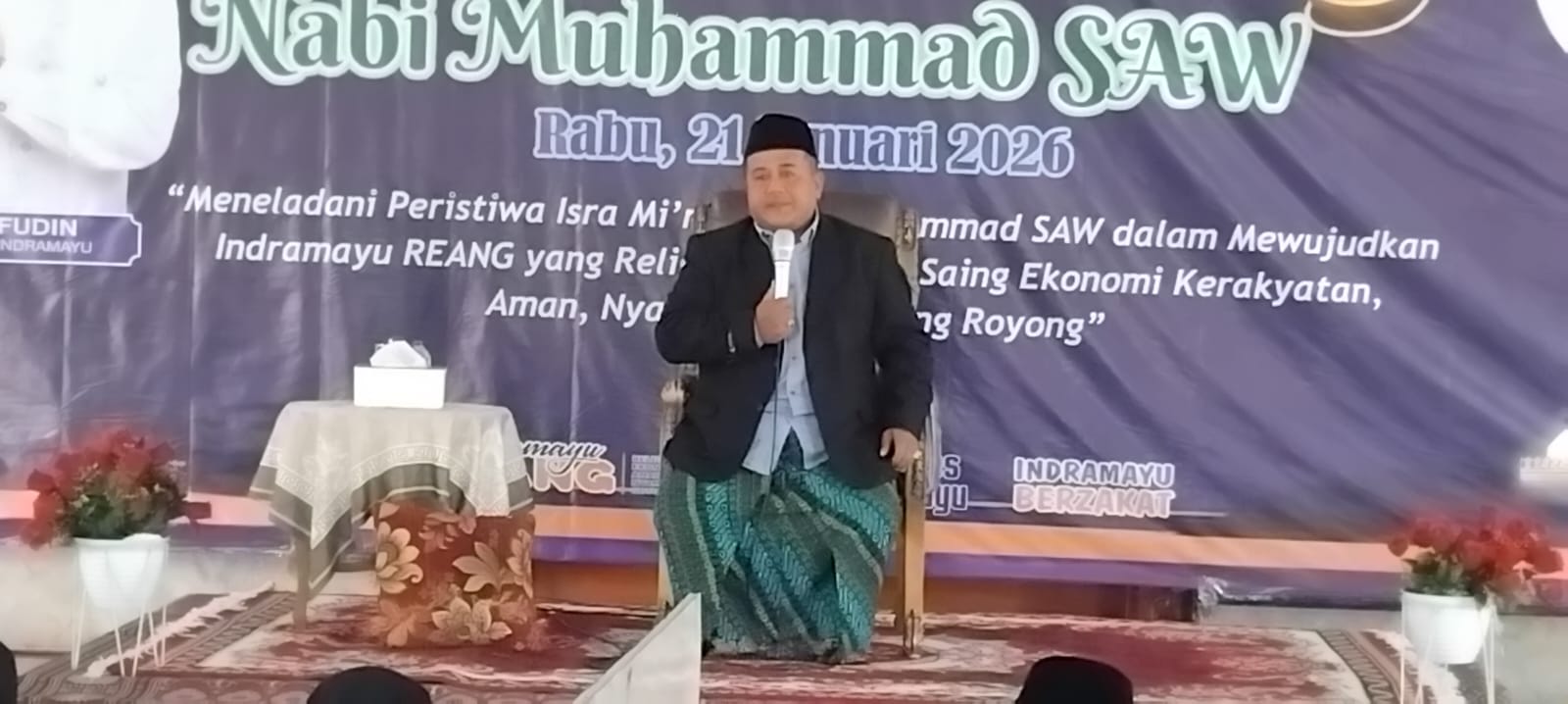 detikhukum,- Indramayu, – Pemerintah Kabupaten (Pemkab) Indramayu Bersama Baznas dan DKM Masjid Agung menggelar peringatan Isro Mi’roj Nabi Muhammad SAW dengan dengan Mengundang KH Ginanjar Wisnu Kawirian dan biasa disebut Kyai GWK dengan Tausiyah Bertemakan ” Meneladani peristiwa Isra Mi’roj Nabi Muhammad SAW dalam mewujudkan Indramayu REANG yang Religius, Berdaya saing Ekonomi Kerakyatan, Aman, Nyaman dan Gotong Royong ” Berjalan Lancar dan Berkah yang diselenggarakan di Halaman Masjid Agung jl.Letjen Sutoyo kelurahan Margadadi kecamatan Indramayu kabupaten Indramayu, Rabu ( 21/01/2026)