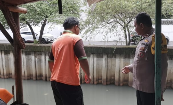 Polsek Cempaka Putih Pantau Ketinggian Air Kali Utan Kayu, Pastikan Lingkungan Aman