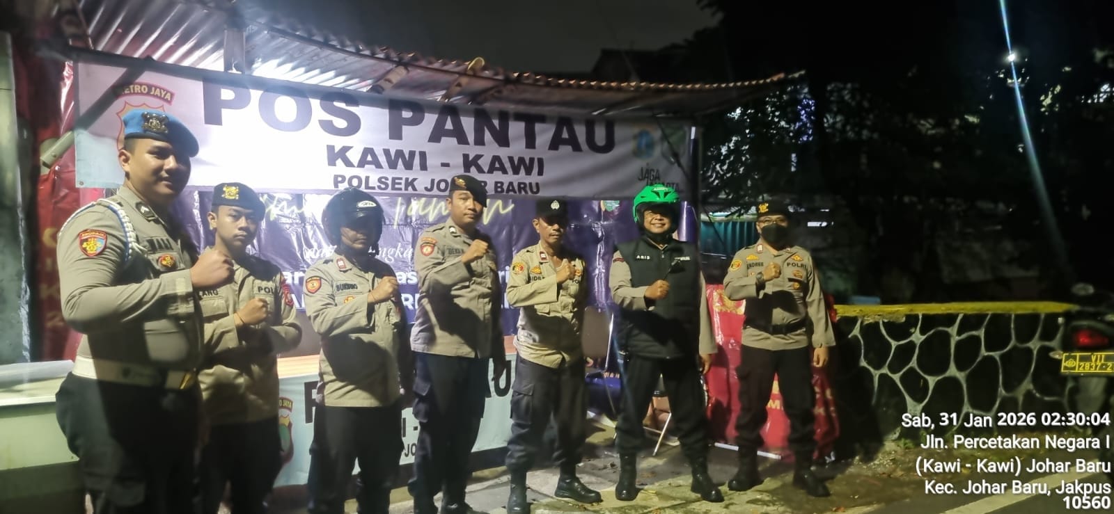 detikhukum.id,- Jakarta Pusat – Upaya menjaga stabilitas keamanan dan ketertiban masyarakat terus dilakukan jajaran Polsek Johar Baru melalui kegiatan cipta kondisi di wilayah hukumnya. Pada Sabtu (31/1/2026) sekitar pukul 02.10 WIB, Polsek Johar Baru menggelar patroli untuk mengantisipasi potensi gangguan keamanan dan ketertiban masyarakat (guantibmas).