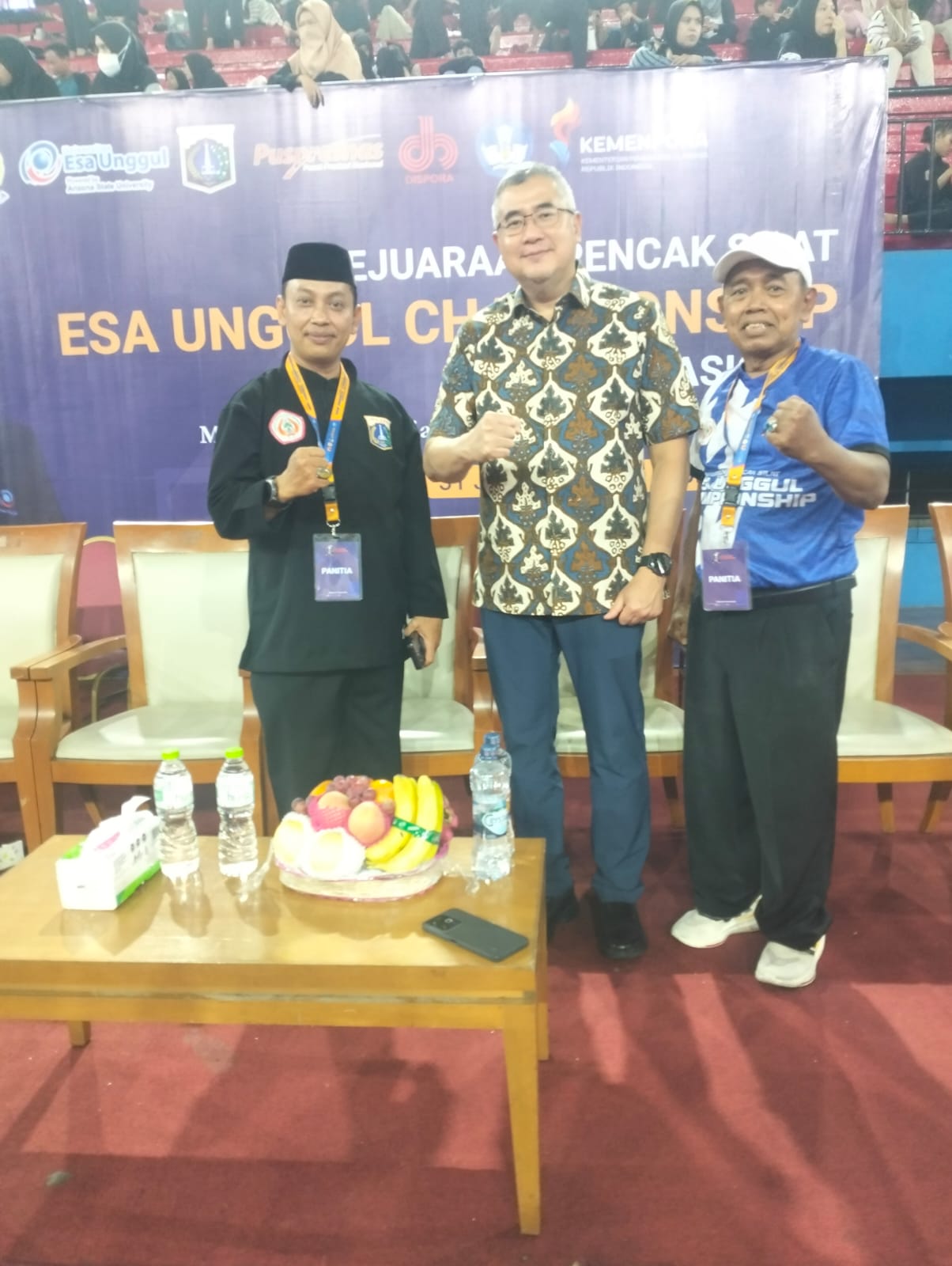 detikhukum.id,- Jakarta – Olahraga pencak silat kini digemari berbagai kalangan, mulai dari usia dini hingga remaja yang dengan semangat menekuni olahraga yang bergengsi tersebut. Menindaklanjuti antusiasme tersebut, Universitas Esa Unggul menggelar Kejuaraan Pencak Silat Esa Unggul Championship Tingkat Nasional bagi seluruh perguruan pencak silat di Indonesia, Pelajar, Mahasiwa &:Umum untuk Katagori Dewasa. Acara ini mendapat dukungan resmi dari Dinas Pemuda dan Olahraga DKI Jakarta (DISPORA), Kementerian Pemuda dan Olahraga (KEMENPORA), seluruh perguruan pencak silat di tanah air, serta beberapa sponsor, Salah Satunya AAA Distro Yang selalu Komitmen Menjadi Sponsor Kejuaraan Kejuaraan PENCAK SILAT