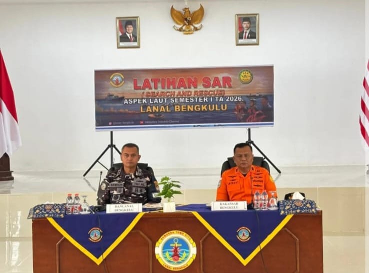 detikhukum.id, || TNI AL, Bengkulu,- Pangkalan TNI Angkatan Laut Bengkulu melaksanakan kegiatan Latihan Search and Rescue (SAR) Aspek Laut Semester I Tahun Anggaran 2026 sebagai upaya meningkatkan kesiapsiagaan dan profesionalisme prajurit dalam menghadapi situasi darurat di wilayah Perairan Bengkulu, Jum’at (13/02/2026).