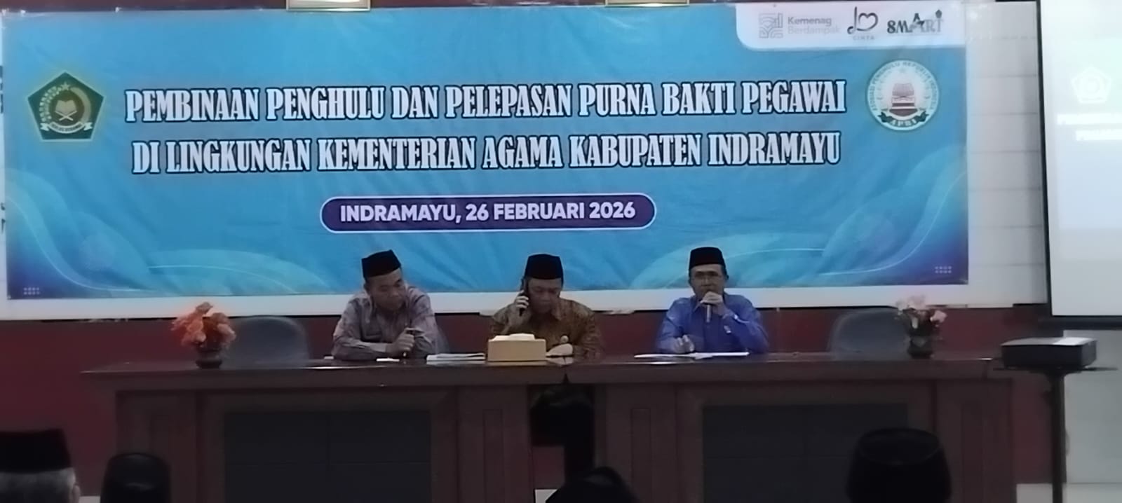 Pimpinan Cabang (PC) Asosiasi Penghulu Republik Indonesia (APRI) Cabang Indramayu menggelar acara Pembinaan Penghulu Dan Pelepasan Purna Bakti Pegawai Dilingkungan Kementerian Agama (Kemenag) Kabupaten Indramayu yang diselenggarakan di Lantai 2 Aula Puspihat (Pusat Layanan Haji dan Umrah Terpadu) Jl. Olahraga No. 03, Kecamatan Indramayu kabupaten Indramayu, Kamis (26/02/2026)