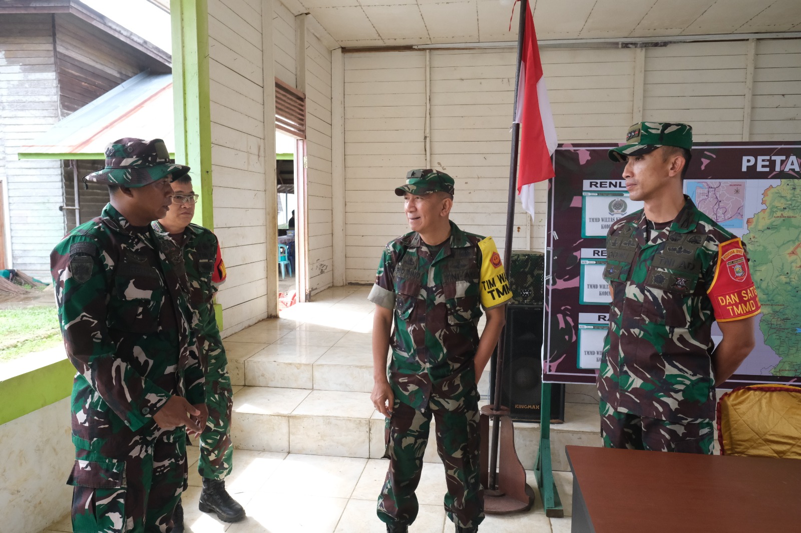 Di Posko TMMD, Dansatgas memaparkan secara langsung program kerja yang telah dilaksanakan sejak tahap pra TMMD hingga progres pelaksanaan saat ini. Ia menjelaskan bahwa Posko TMMD berfungsi sebagai pusat komando dan pengendalian kegiatan, tempat koordinasi antara Satgas TMMD, pemerintah daerah, aparat kampung serta masyarakat.