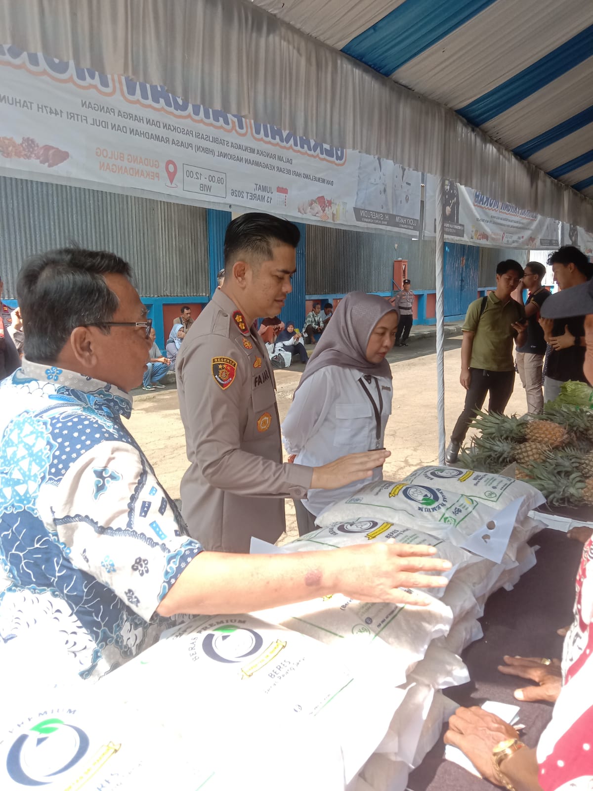 detikhukum.id, || Indramayu – Acara Gerakan Pangan Murah (GPM) DiGudang Bulog Pekandangan Bersama Polres (Polisi Resort), Dinas Ketahanan Pangan dan Pertanian (DKPP) Dan Bulog (Badan Urusan Logistikl Indramayu DiBulan Ramadhan 1447 H / 2026 M.Dalam Rangka Stabilisasi Pasokan Sembako (Sembilan Bahan Pokok) dan Harga Pangan, Polres Indramayu, Bulog (Badan Urusan Logistik) Indramayu bersama Dinas Ketahanan Pangan Dan Pertanian (DKPP) Indramayu mengadakan Gerakan Pangan Murah (GPM) di halaman kantor Kejaksaan Indramayu, Jumat (13/03/2026).