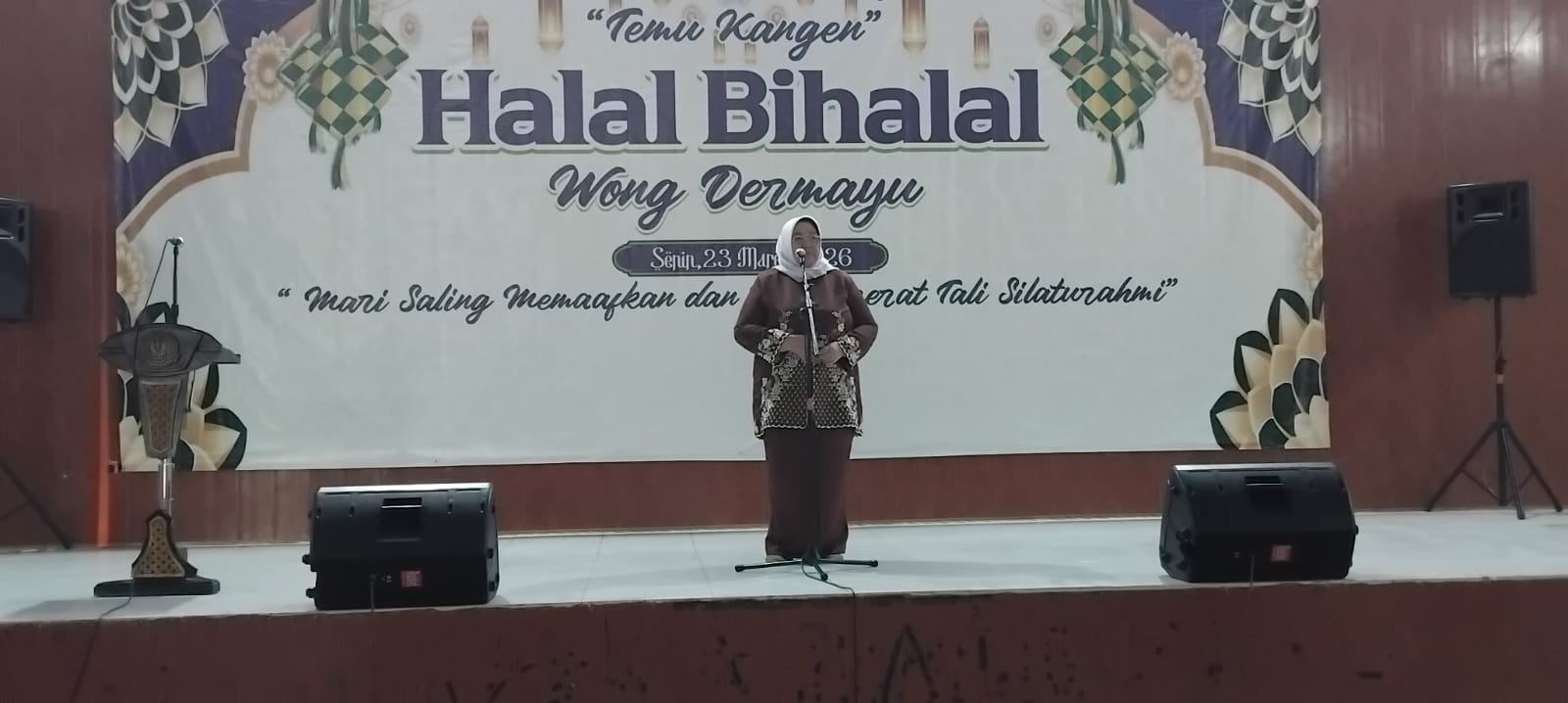 Dalam sambutannya Rektor ITPB Dr. Ir. Hj. Hanifah Handayani, M.T. Menjelaskan bahwa, ” Alhamdulillah.. .Kita bisa berkumpul bersama di GOR ini dalam acara Temu Kangen Halal Bihalal Wong Dermayu. Acara ini sebenarnya sudah ketiga kali secara berturut turut kita selenggarakan Halal Bi Halal Wong Dermayu ini. Selanjutnya beliau mengatakan bahwa untuk tahun ini diadakan pula acara diskusi publik diaspora yg diselenggarakan tg 24 maret 2026. Jadi ada yang datang hari ini dan ada yang datang besok. Boleh juga datang dua-duanya. Kalau hari ini halal bi halal untuk saling ada diskusi.