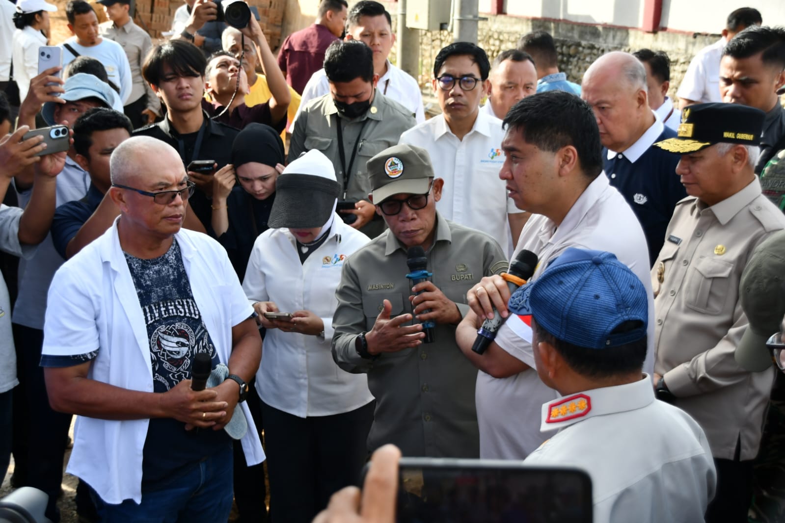Dalam kesempatan itu Bupati Tapanuli Tengah Masinton Pasaribu mengucapkan terima kasih atas kedatangan menteri PKP dan Mendagri mengunjungi Huntap Asrama Haji Pinangsori.