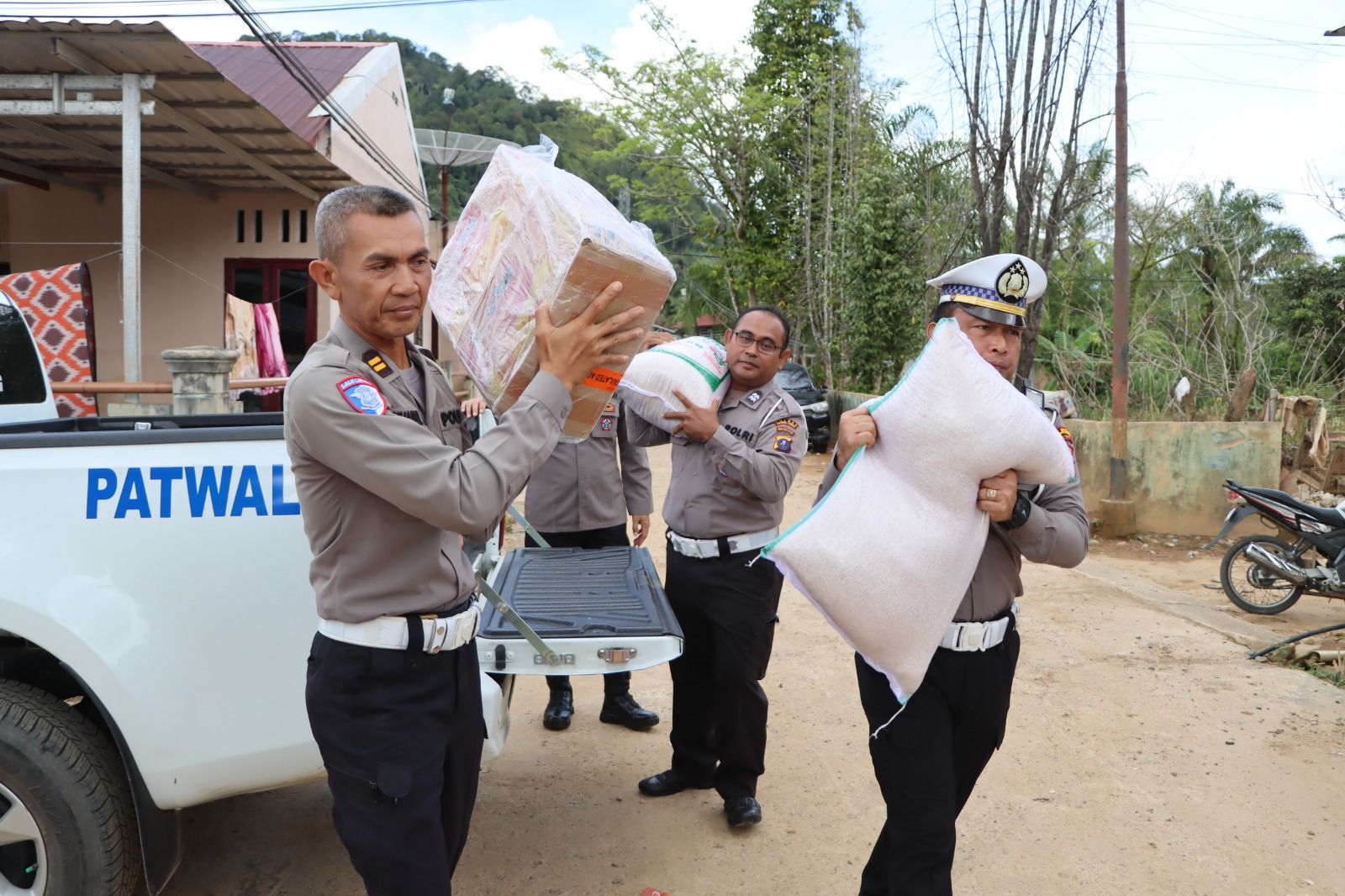 Penyaluran bantuan difokuskan kepada warga yang sedang menjalani masa transisi pemulihan pascabencana banjir dan tanah longsor. Dalam kegiatan tersebut, Polres Tapteng mendistribusikan paket bantuan logistik yang terdiri dari 30 Karung Beras (kemasan 25 kg per karung), 40 Kardus Mie Instan, 3 Kardus Ikan Kaleng (Sarden)