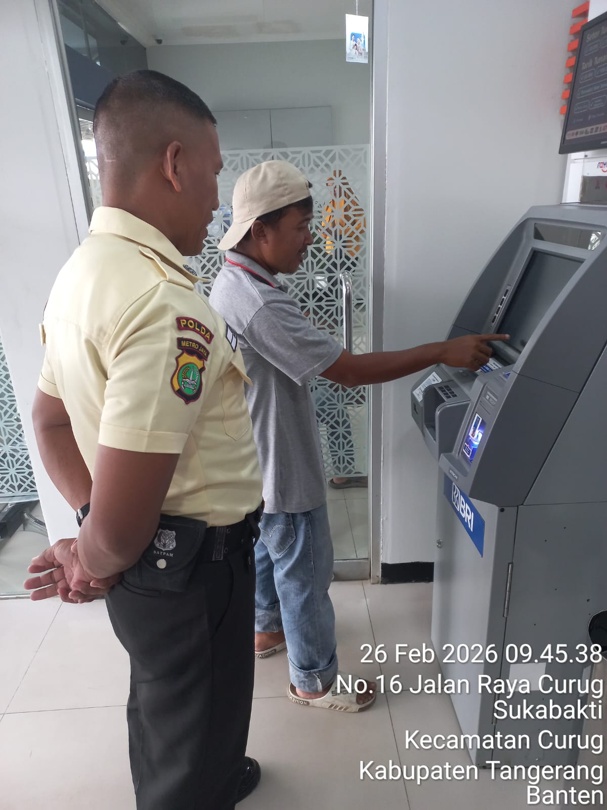 Satpam BRI Unit Curug Bantu dan Edukasi Nasabah Tarik Tunai Tanpa Kartu di Galeri ATM