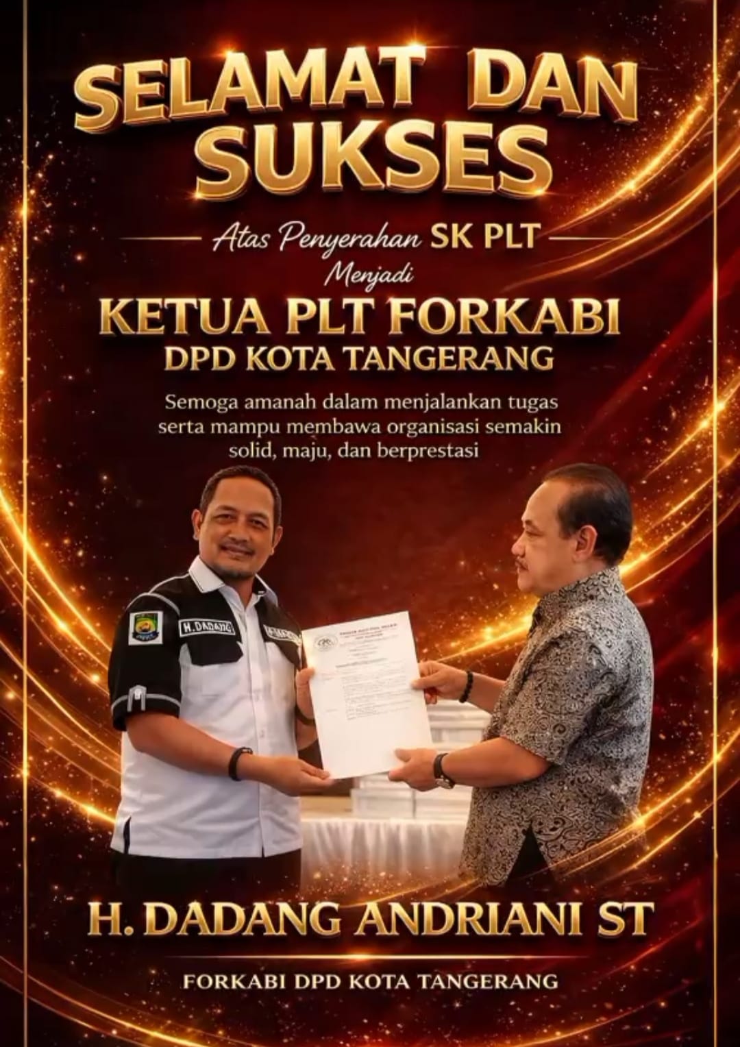 H.Dadang Andriani. ST resmi diangkat sebagai PLT DPD Forkabi Tangkot